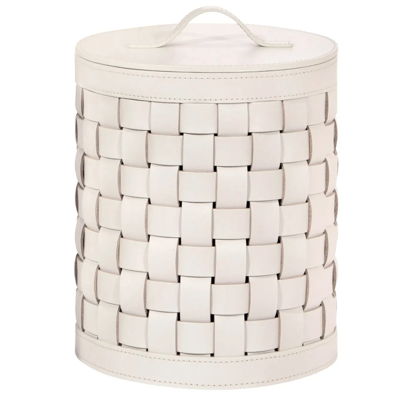 Cestini portaoggetti in pelle intrecciata dotati di coperchio. Il prezioso intreccio fatto a mano gli conferisce un fascino elegante che si trasmette a qualsiasi luogo in cui viene collocato. Adatto sia per interni che per esterni. Disponibile in nero, grigio, avorio, marrone cioccolato, turchese, bianco e blu reale.