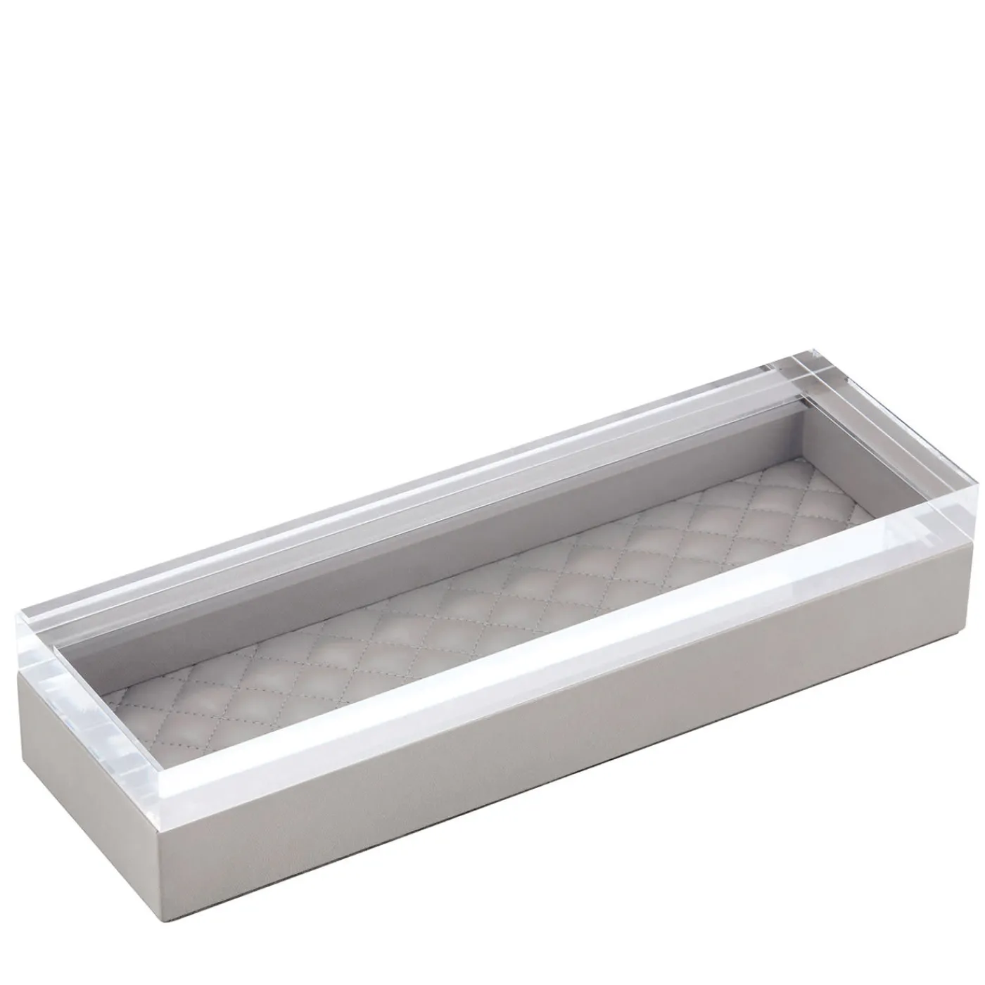 Questo elegante e versatile cofanetto rivestito in pelle, parte della collezione Febe, è una testimonianza di raffinata artigianalità ed eleganza senza tempo. Vanta un coperchio in acrilico e una fodera imbottita di diamanti trapuntati.