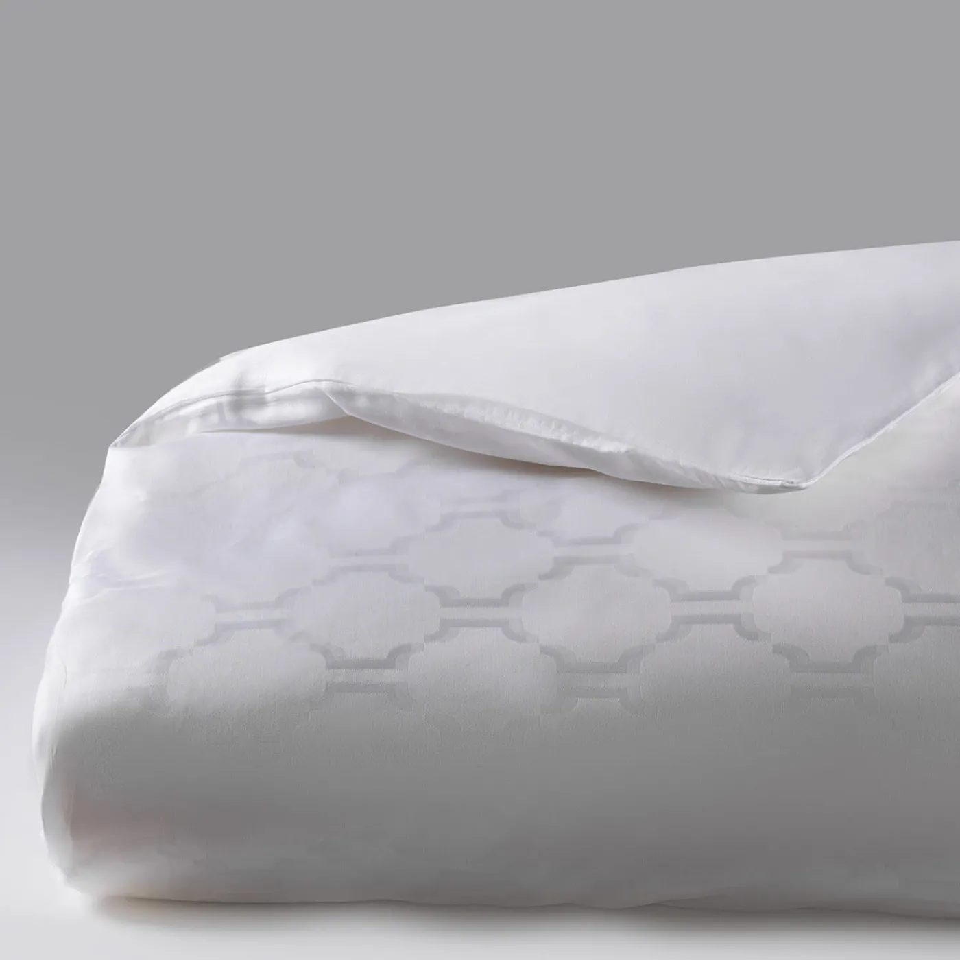 I motivi damascati di fine Ottocento sono reinterpretati in chiave contemporanea in questo raffinato copripiumino matrimoniale. Realizzato in pregiato raso di cotone e dotato di una discreta chiusura a zip nascosta, colpisce per la sottile lucentezza del motivo jacquard e garantisce una durata impareggiabile grazie al titolo di 600 fili. Per le istruzioni di manutenzione, consultare il Concierge.