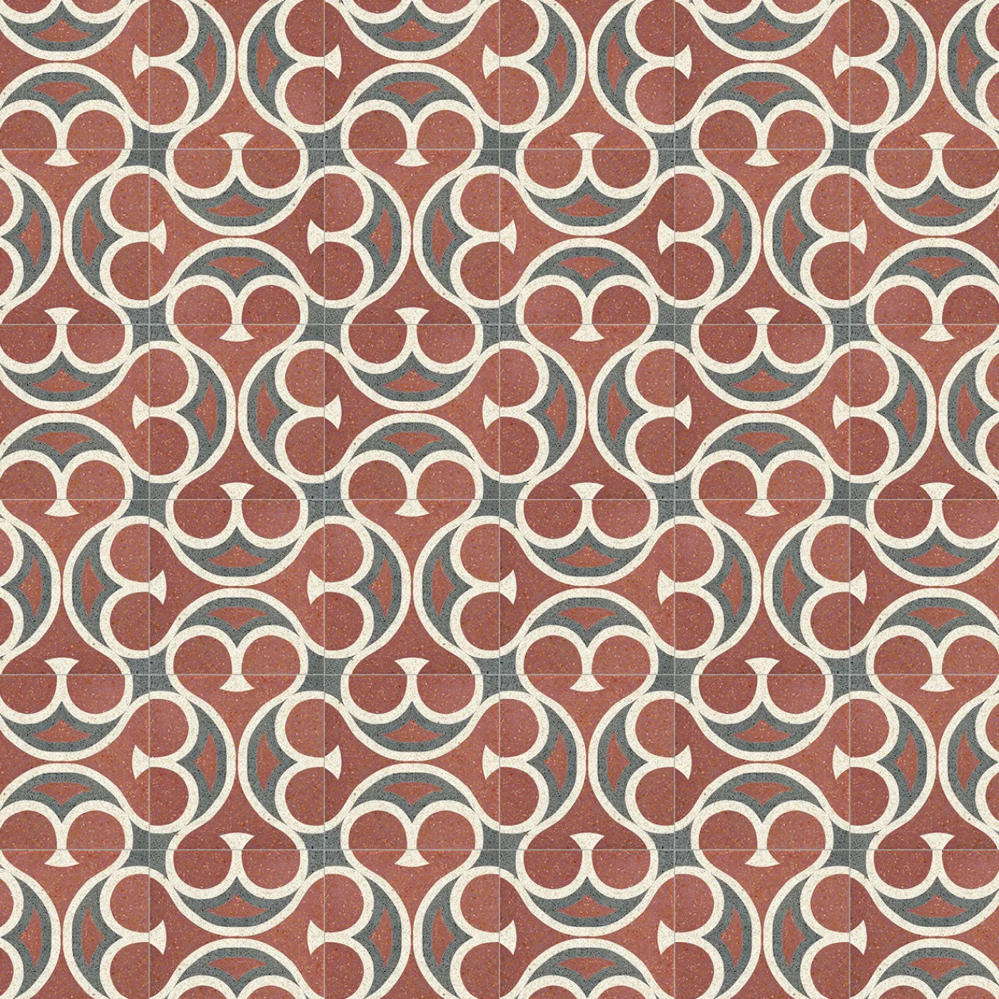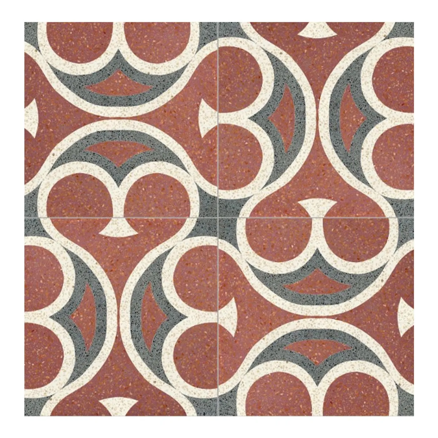 Un punto focale sorprendente per interni moderni, queste magnifiche piastrelle in terrazzo presentano un motivo contemporaneo di forme curve in rosso, bianco perla e grigio. Ogni piastrella è magistralmente realizzata a mano e decorata a mano dagli artigiani esperti del laboratorio di Romano in Sicilia, utilizzando tecniche tradizionali e una raffinata miscela di materie prime naturali—compresi cemento, schegge di marmo e sabbia vulcanica dell’Etna. Le piastrelle sono vendute al metro quadrato, con ogni metro quadrato che include 16 piastrelle.