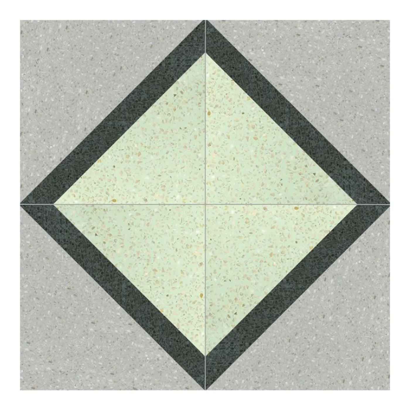 Sapientemente realizzati a mano e decorati a mano dagli esperti artigiani del laboratorio di Romano in Sicilia, queste magnifiche piastrelle in terrazzo fungono da punto focale affascinante in interni sia moderni che eclettici. Realizzate con un raffinato mix di materie prime naturali—tra cui cemento, schegge di marmo e sabbia vulcanica dell’Etna—ogni piastrella presenta un motivo romboidale delicatamente reso in linee di verde chiaro, grigio e nero ebano. Le piastrelle sono vendute al metro quadrato, con ciascun metro quadrato che include 25 piastrelle.