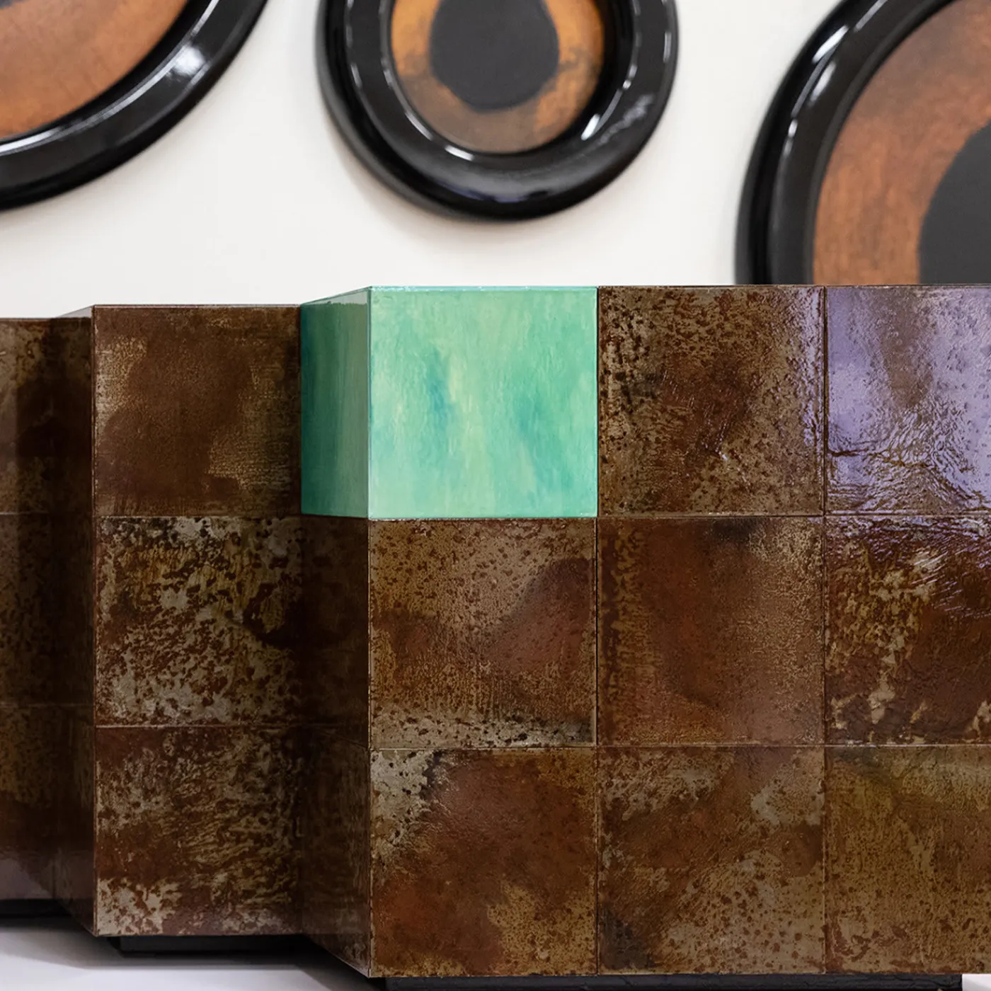 Hypnosis è un’originale opera modulare in ferro e legno disponibile in 4 dimensioni, pensata per arredare ambienti grandi o piccoli. Le cornici sono in legno, mentre l’occhio centrale è una lastra di ferro ossidato, dove l’esclusivo processo di ossidazione rende il ferro di un arancione brillante, offrendo un fantastico contrasto e facendo sì che ogni elemento sia diverso dall’altro.