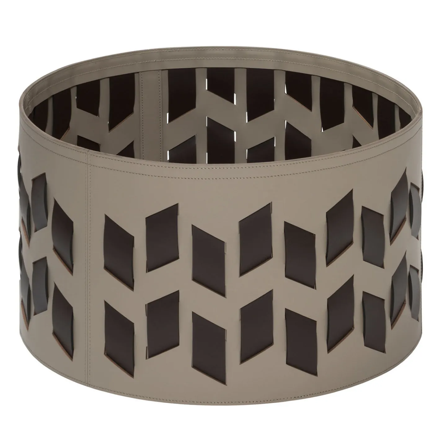 I cestini Cancun sono caratterizzati da una trama che si sviluppa solo attraverso linee verticali tratteggiate che, essendo tagliate in diagonale, danno vita a un disegno che ricorda le atmosfere calde e retrò di certi tessuti tipici del Centro America. Struttura in finissima pelle rigenerata rinforzata con finitura impermeabile e resistente ai raggi UV. Base inferiore in gomma impermeabile e antiscivolo. Adatto sia per uso interno che esterno. Sono disponibili altri colori. Chiedere al Concierge per i dettagli.