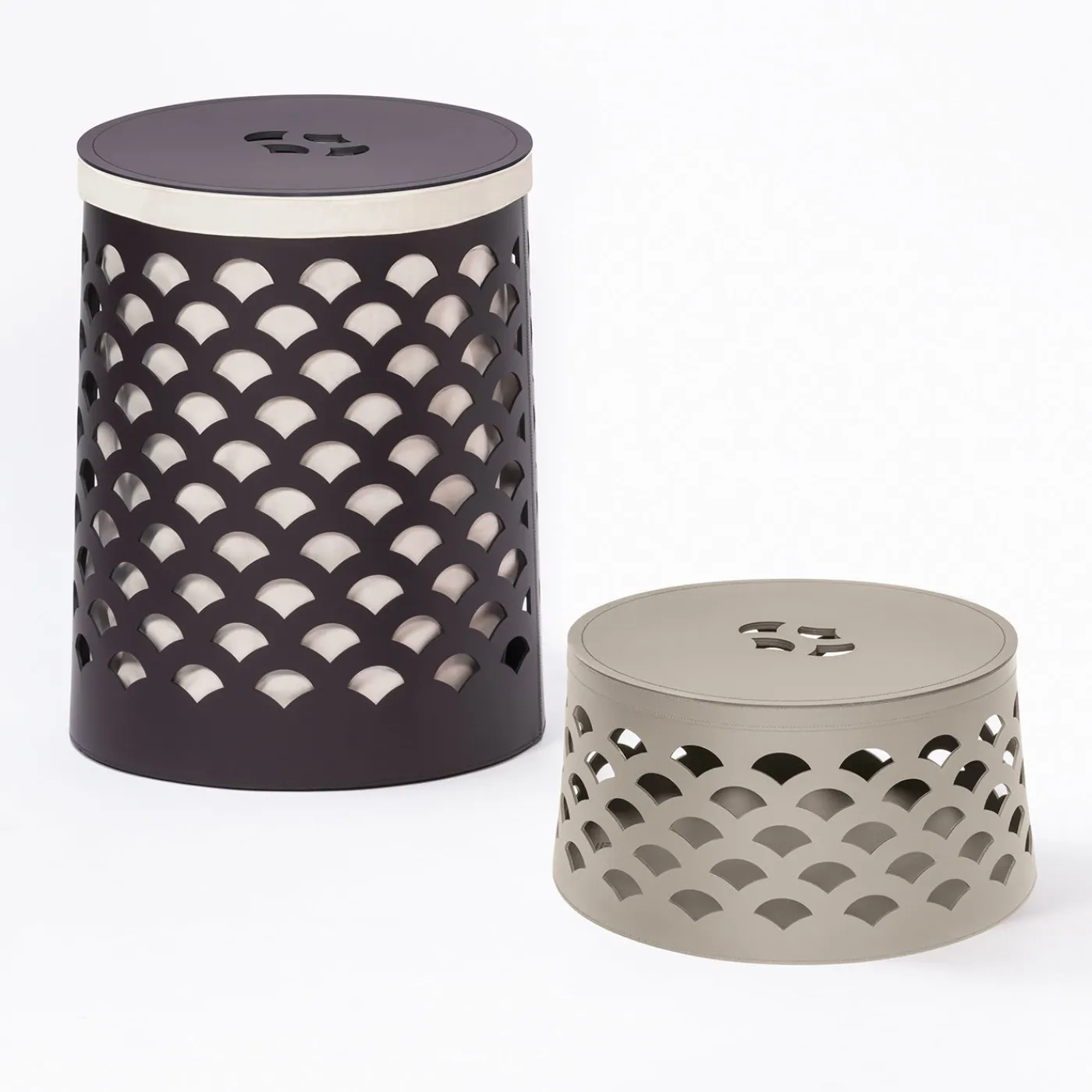 Interamente realizzato in finissima pelle rigenerata di alta qualità, questo cestino rotondo è perfetto per riviste, biancheria e oggetti di uso quotidiano. La finitura della pelle, resistente all’acqua e ai raggi UV, rende il cestino ideale sia per l’uso interno che esterno. Il motivo Venezia si ispira alle classiche decorazioni a foglia che ricordano l’esotico, formando forme a ventaglio che si protendono verso l’alto.