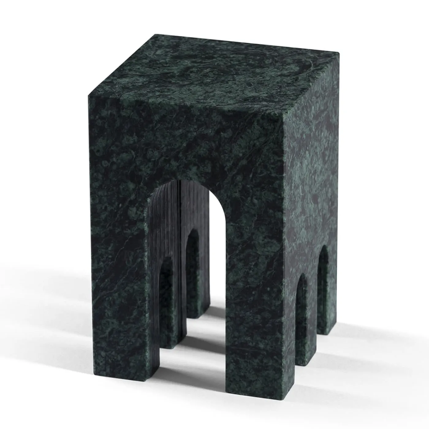 Parte della collezione The Village, questa superba scultura è un invito a riflettere sull’essenza della casa come luogo in cui sentirsi protetti e amati, più che un semplice tetto ma un rifugio sicuro. Questo concetto si è diffuso come conseguenza dell’isolamento sperimentato nel 2020. Una serie di archi sono ritagliati dal suo corpo parallelepipedo in marmo verde Guatemala, caratterizzato da linee pulite tipiche del movimento architettonico di Novecento. Altre opzioni di marmo sono disponibili su richiesta.