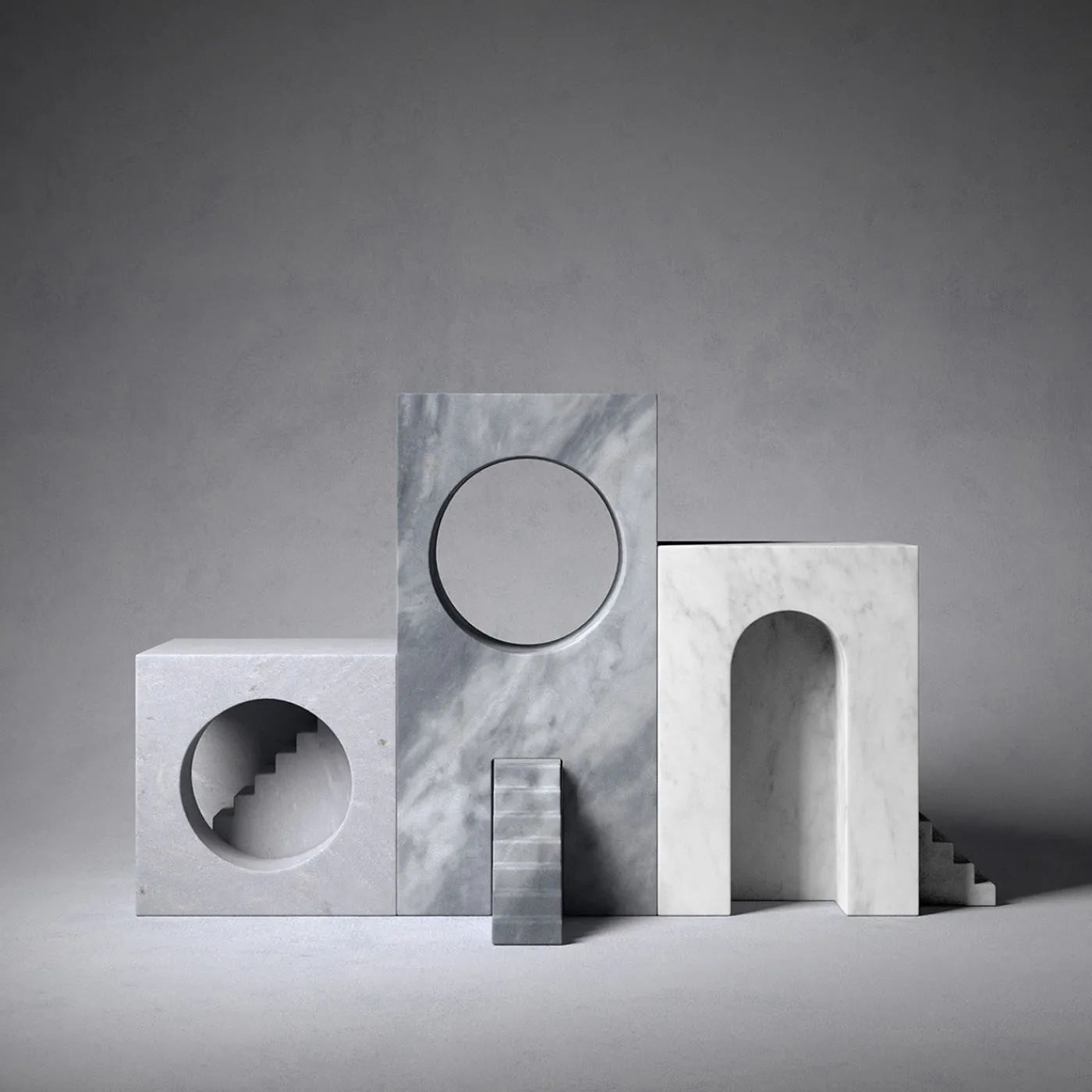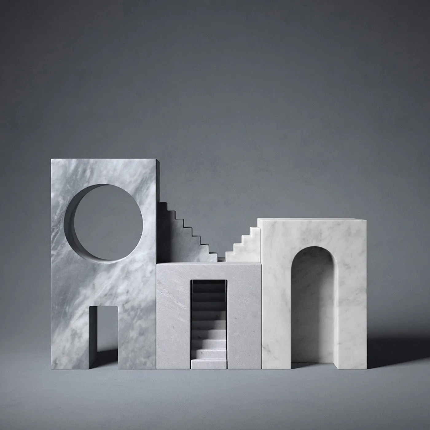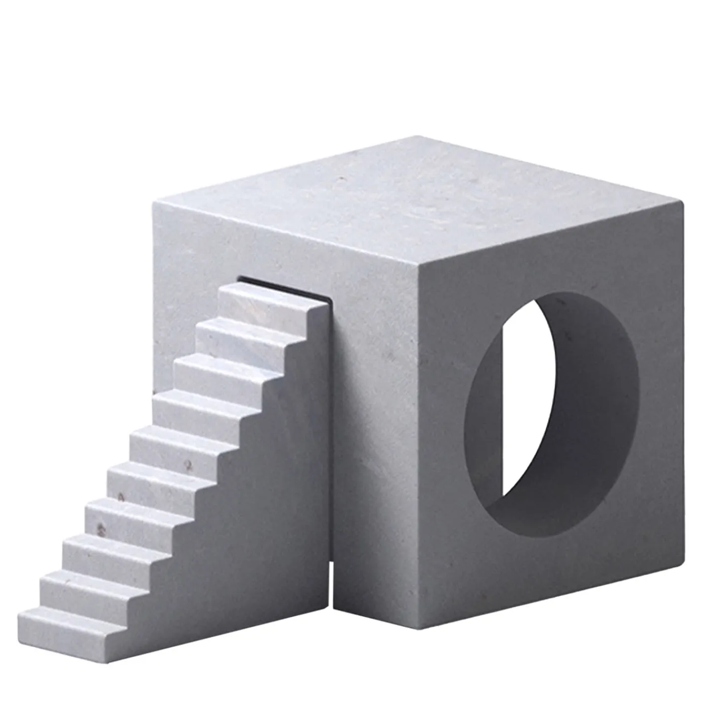 Una scala che conduce in cima a un palcoscenico vuoto, la cui struttura cubica è caratterizzata da forme minimaliste ritagliate, definisce la natura concettuale di questa scultura. Realizzata in pregiato marmo Palissandro Bluette, appartiene alla collezione The Village, che conta pezzi unici dedicati alla casa come simbolo di protezione e riparo. Ogni ambiente contemporaneo sarà valorizzato da questo pezzo, che cattura l’occhio e la mente.