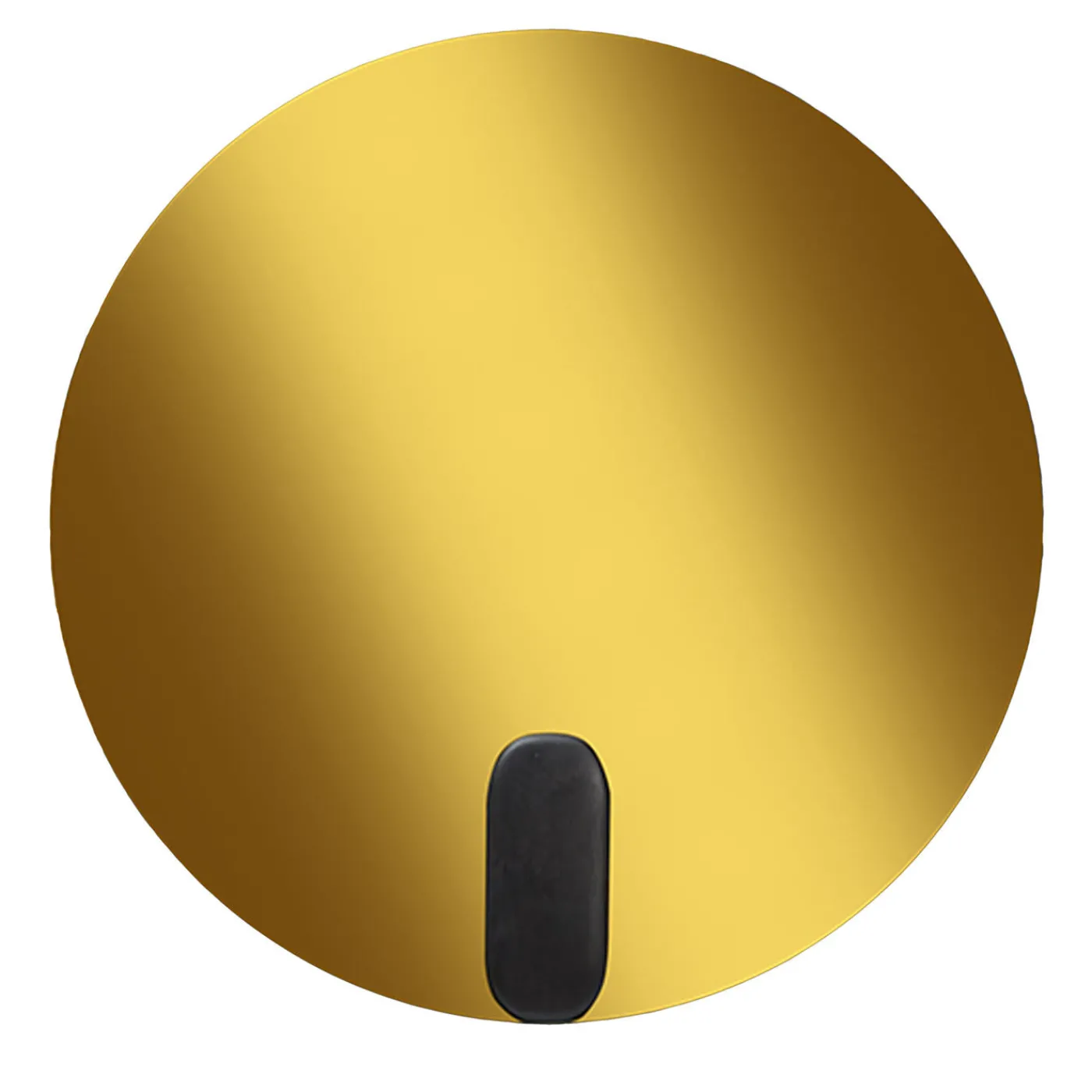 Aggiungete un accento di puro lusso all’ingresso o alla console del soggiorno con questo esclusivo specchio che emana una calda luce dorata, elevando istantaneamente qualsiasi interno con l’intrigo di un’opera d’arte. La forma circolare e minimalista è caratterizzata da un piccolo elemento nero alla base, che sembra trattenere lo specchio dorato come un fermaglio. Questo pezzo accattivante si adatta al meglio a interni moderni e contemporanei con dettagli dorati coordinati.