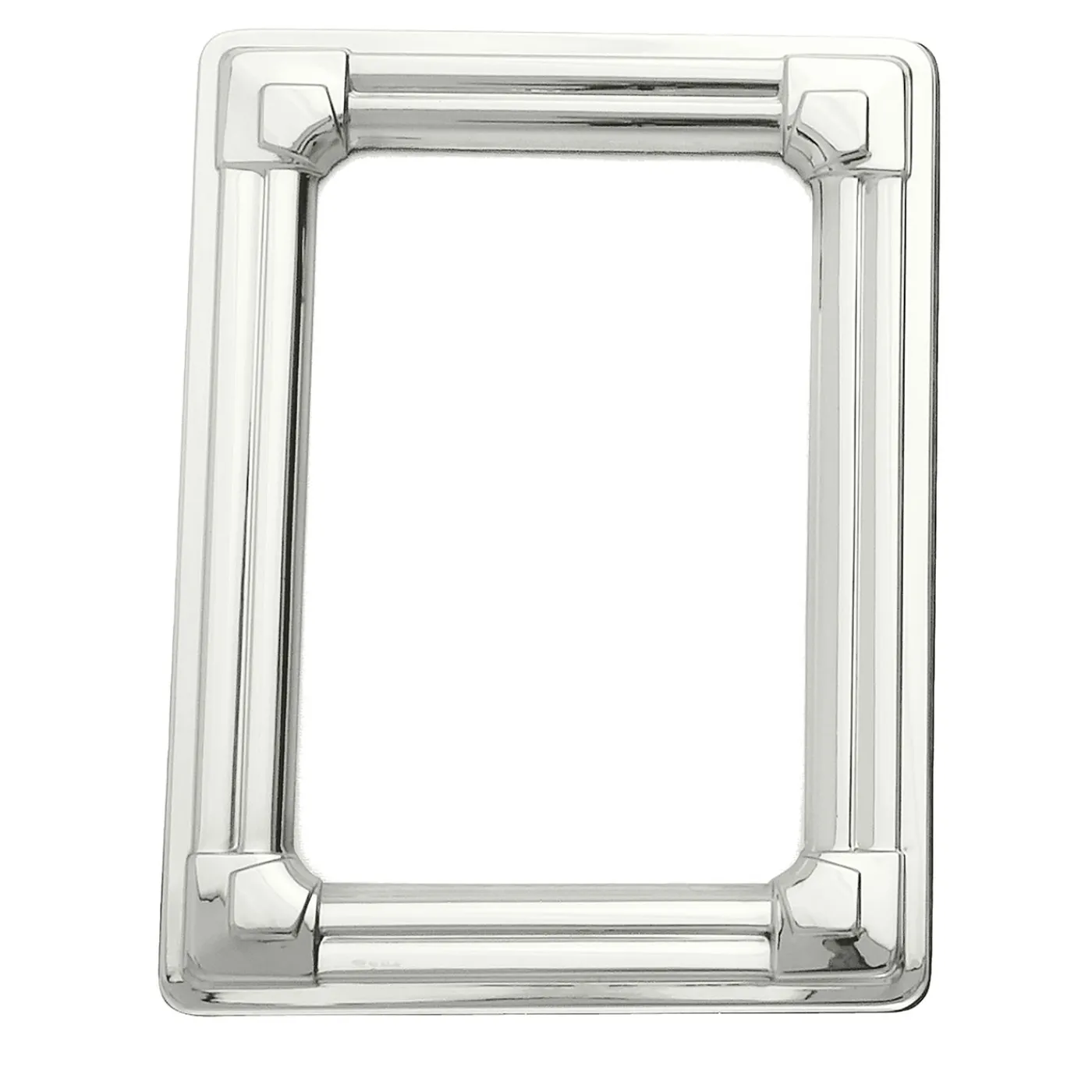 Questa elegante cornice è realizzata in argento sterling 925. Lo schienale è in mogano massiccio con finitura liscia, rivestito all’interno con tessuto moiré. Dotata di angoli decorativi e di un design con blasoni, la cornice è rifinita con chiusure con logo Schiavon per un tocco esclusivo.
