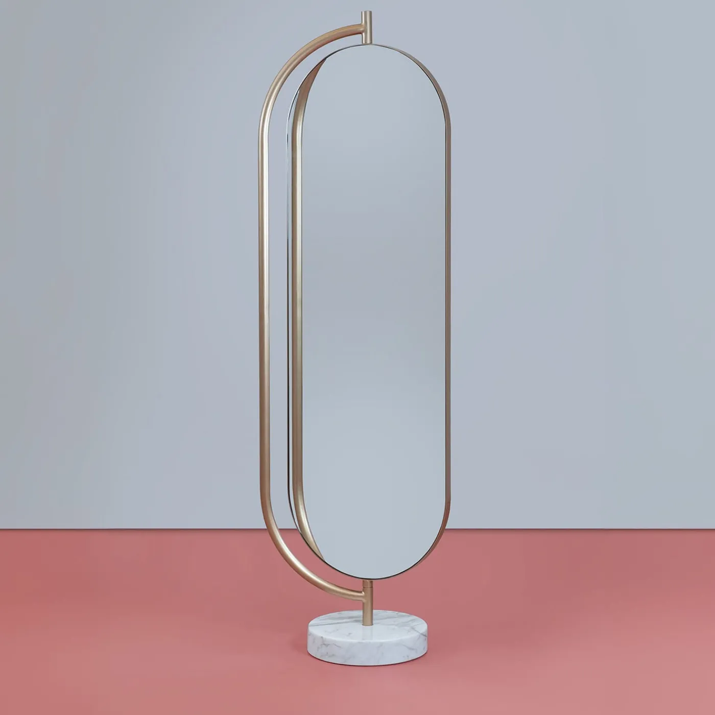 Giove Mirror, progettato da Artefatto Design Studio, è un elegante specchio a tutta lunghezza che combina funzionalità e stile. La base in marmo Premium Calacatta conferisce stabilità e raffinatezza, mentre la struttura in ottone satinato aggiunge un tocco di modernità. Il retro dello specchio è rivestito in Standard Velvet Bone, disponibile in diverse varianti. La possibilità di ruotare lo specchio all’interno della cornice metallica offre flessibilità nel posizionamento e nell’angolo di visione. Un pezzo versatile per ogni ambiente.