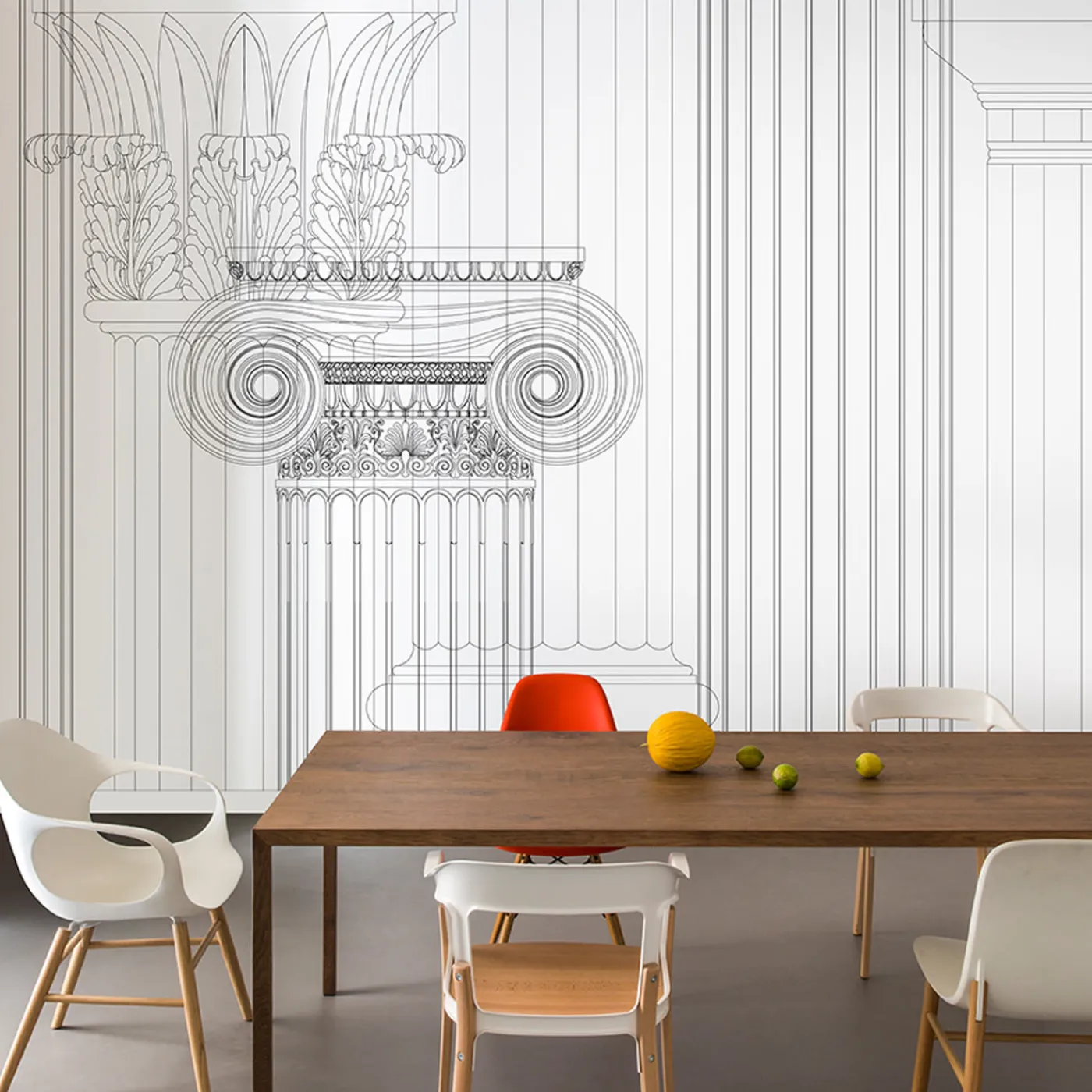 La collezione di carte da parati Layers elabora diverse giustapposizioni temporali e geometriche immaginando un passato digitale. Elementi classici come colonne e capitelli, in un trionfo di forme wireframe. Design di Chiara Pellicano e Edoardo Giammarioli. Prezzo al metro quadro.