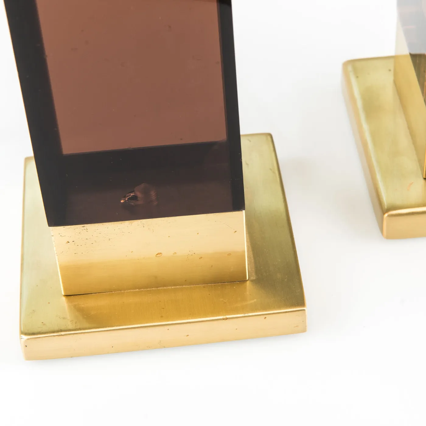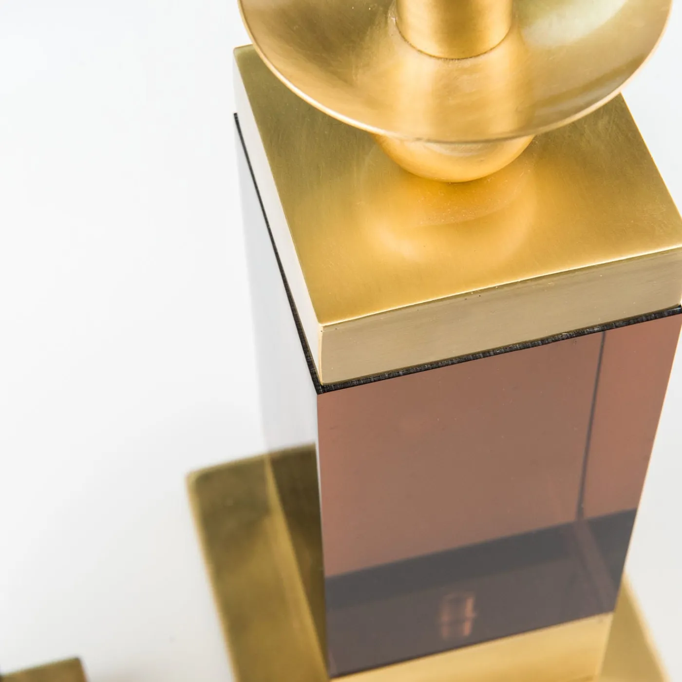 Il portacandele “Spirit” è realizzato con una combinazione di ottone naturale protetto e plexiglass marrone fumé, creando un’estetica moderna e di grande impatto visivo. Questo candelabro è venduto singolarmente e comprende una candela color avorio. Serve sia come elemento di illuminazione funzionale che come accento decorativo contemporaneo.