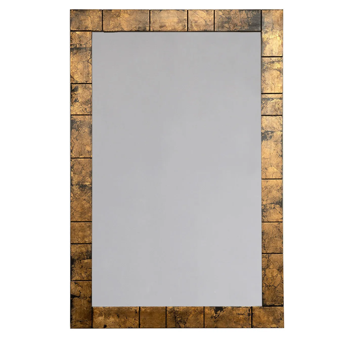 Questo specchio da parete rettangolare in legno, dall’allure regale, presenta un design geometrico ordinato e armonioso, nobilitato da una preziosa finitura in foglia di bronzo su sfondo nero. L’eleganza rigorosa riflette inequivocabilmente la sua ispirazione contemporanea, rafforzata dalle scanalature lineari che animano la cornice.