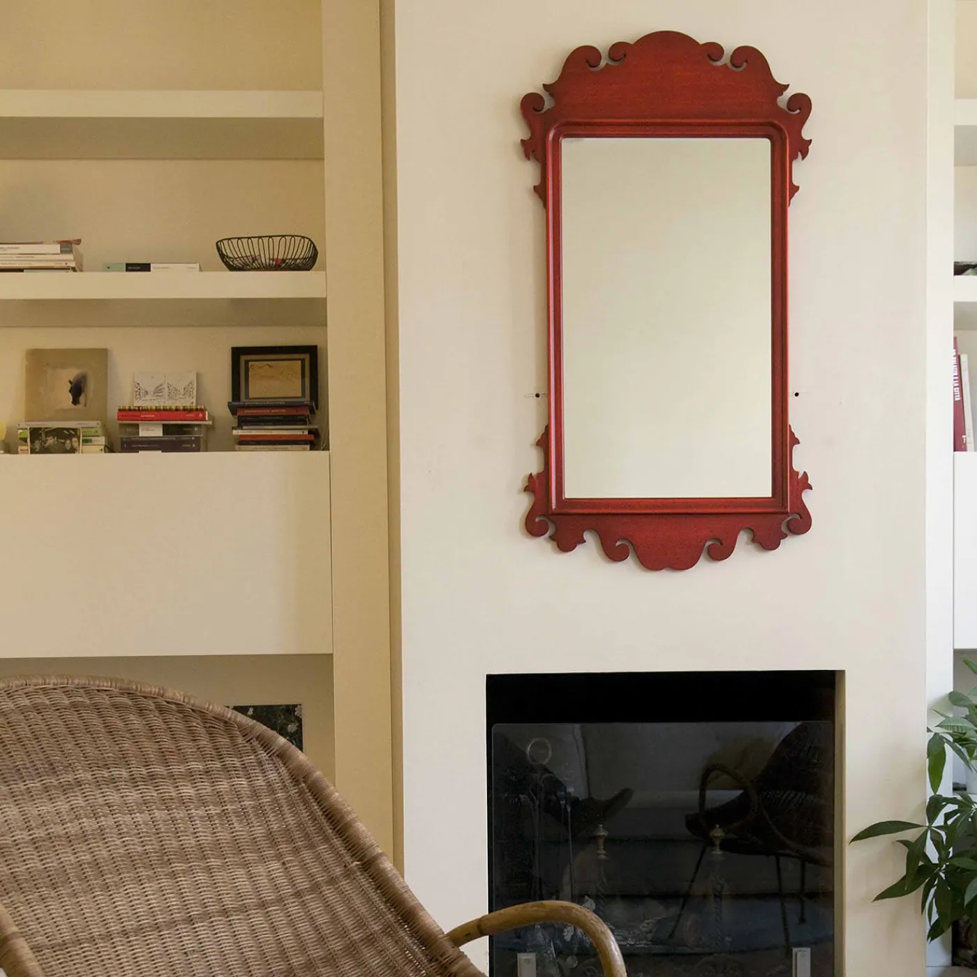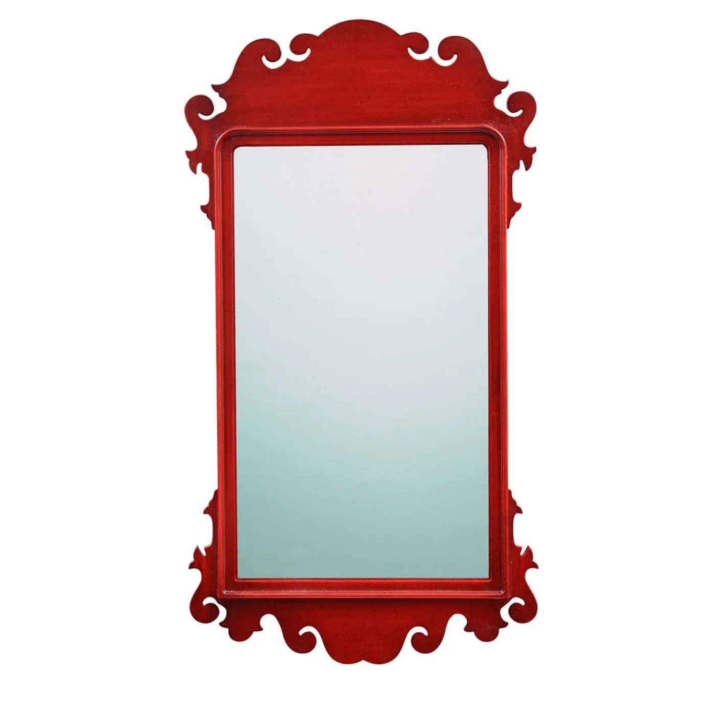 Questo specchio in legno ha una finitura rosso Cina, impreziosita da una silhouette intagliata in modo unico per un’ulteriore influenza asiatica. La finitura opaca della cornice contrasta con la superficie lucida dello specchio. Questo stile assolutamente moderno ha un tocco di antico, che lo rende perfetto per un’ampia gamma di ambienti.