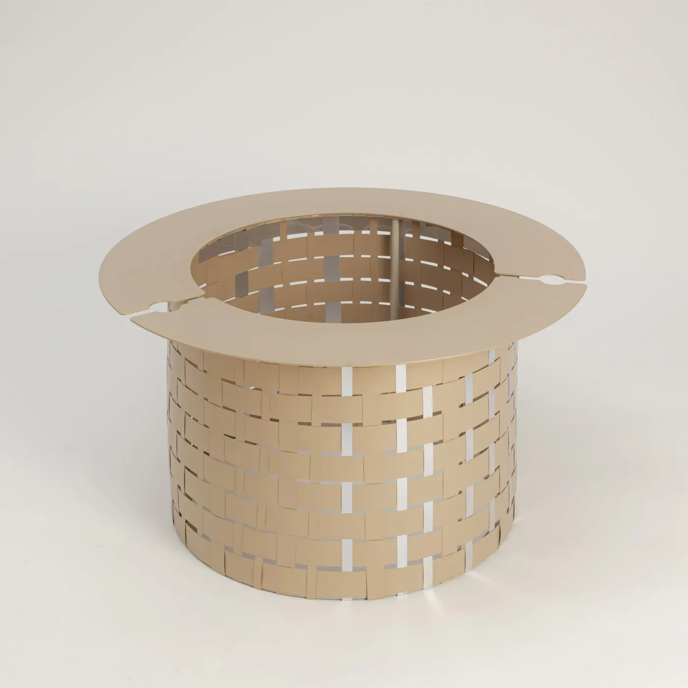 Realizzato in SPLOT® – una rete di fogli di alluminio di alta qualità – questo cachepot è stato progettato all’insegna della versatilità. Una raffinata tonalità dorata opaca, contrastata solo da inserti argentati, contraddistingue la sua silhouette cilindrica, dotata di un ampio bordo piatto arricchito da fessure sagomate per consentire agli ospiti di inserire i loro bicchieri a stelo durante le feste. Nel catalogo Artemest sono disponibili più varianti. È possibile acquistare separatamente la base, contattando il consierge per ulteriori informazioni.