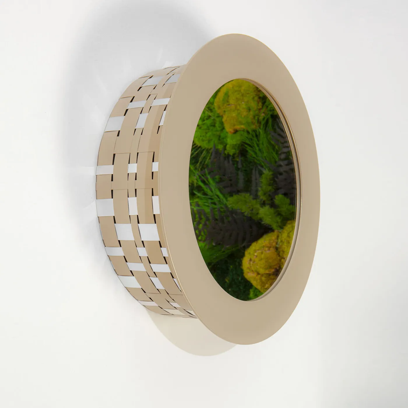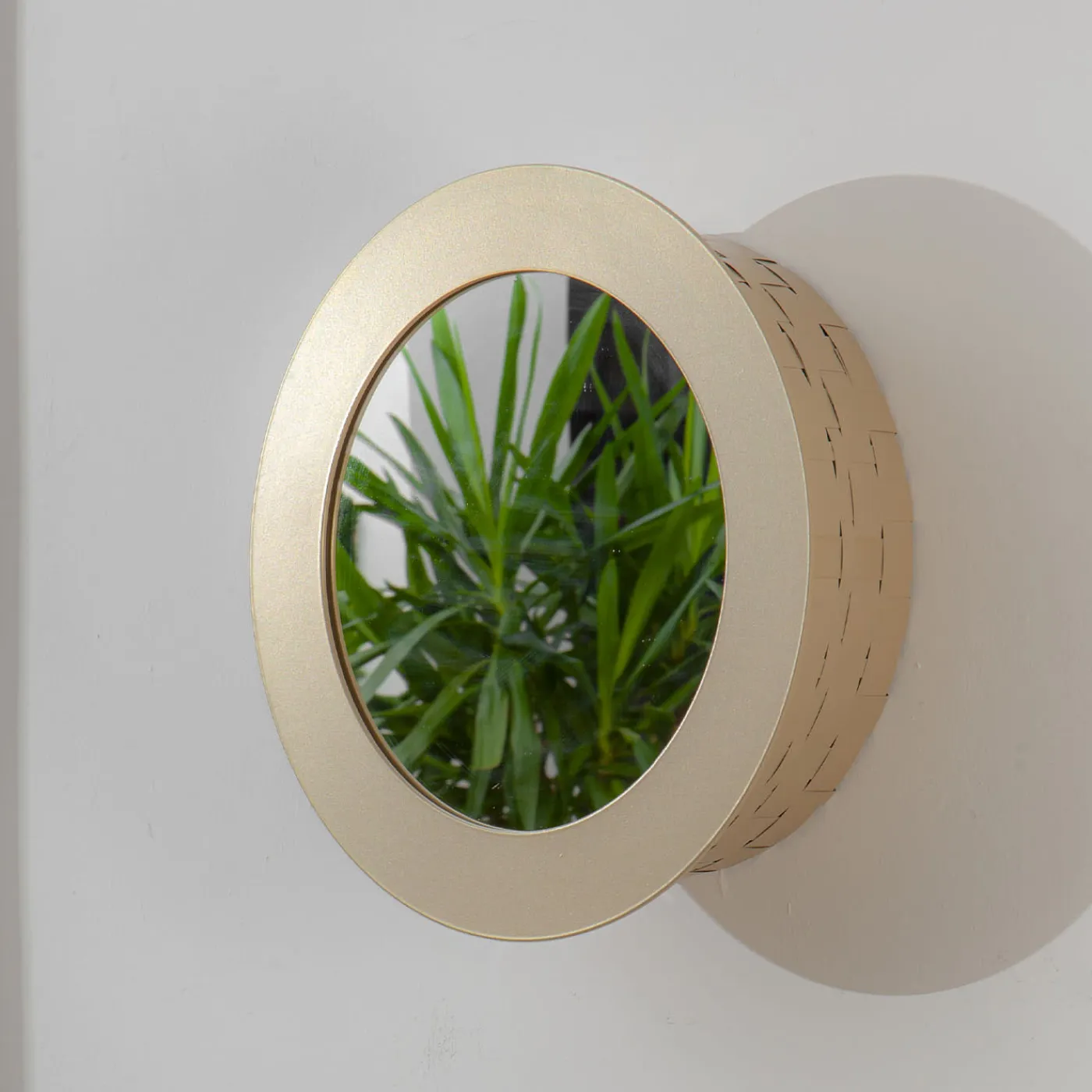 Audace e glamour, questo specchio rotondo trascende la mera funzionalità per abbracciare una funzione squisitamente decorativa. Le finiture a contrasto in oro champagne massiccio e in stile ottico in oro champagne e argento amplificano il carattere del pezzo, già dichiarato dal suo caratteristico design a rete che impiega SPLOT® – foglio di alluminio di alta qualità. Contattare il Concierge per conoscere le varianti disponibili.