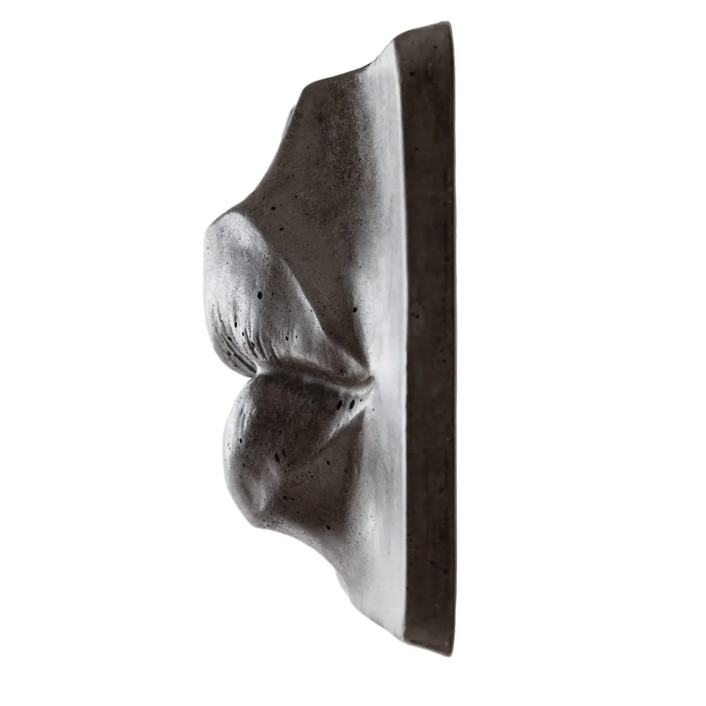 Scultura interamente realizzata a mano con una miscela di cementi e sabbie vulcaniche dell’Etna. La consistenza porosa e il colore non uniforme, volutamente realizzati, sono il risultato di una pigmentazione ottenuta grazie a materiali naturali e a una lenta essiccazione all’aria. Il processo finale di ceratura crea una patina protettiva leggermente lucida, che può essere rimossa. Dotato di un incavo sul retro, può essere appeso alle pareti grazie alle staffe metalliche fornite con il prodotto.