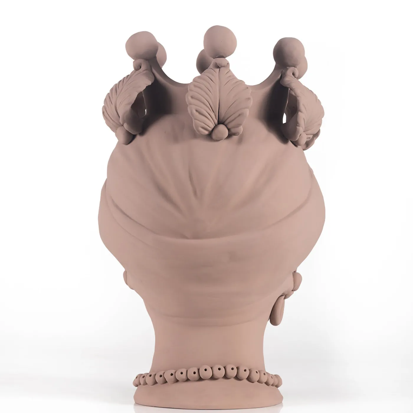 Questa splendida gamma di vasi è interamente realizzata a mano come da tradizione siciliana e si ispira alla mitologia greca. In questo esempio, il vaso Ade è caratterizzato da una finitura beige salmone opaco e rappresenta un’aggiunta creativa ed elegante a qualsiasi ambiente esterno o area della casa in cui fiori o piante completano l’arredamento. Il vaso non può essere riempito d’acqua.