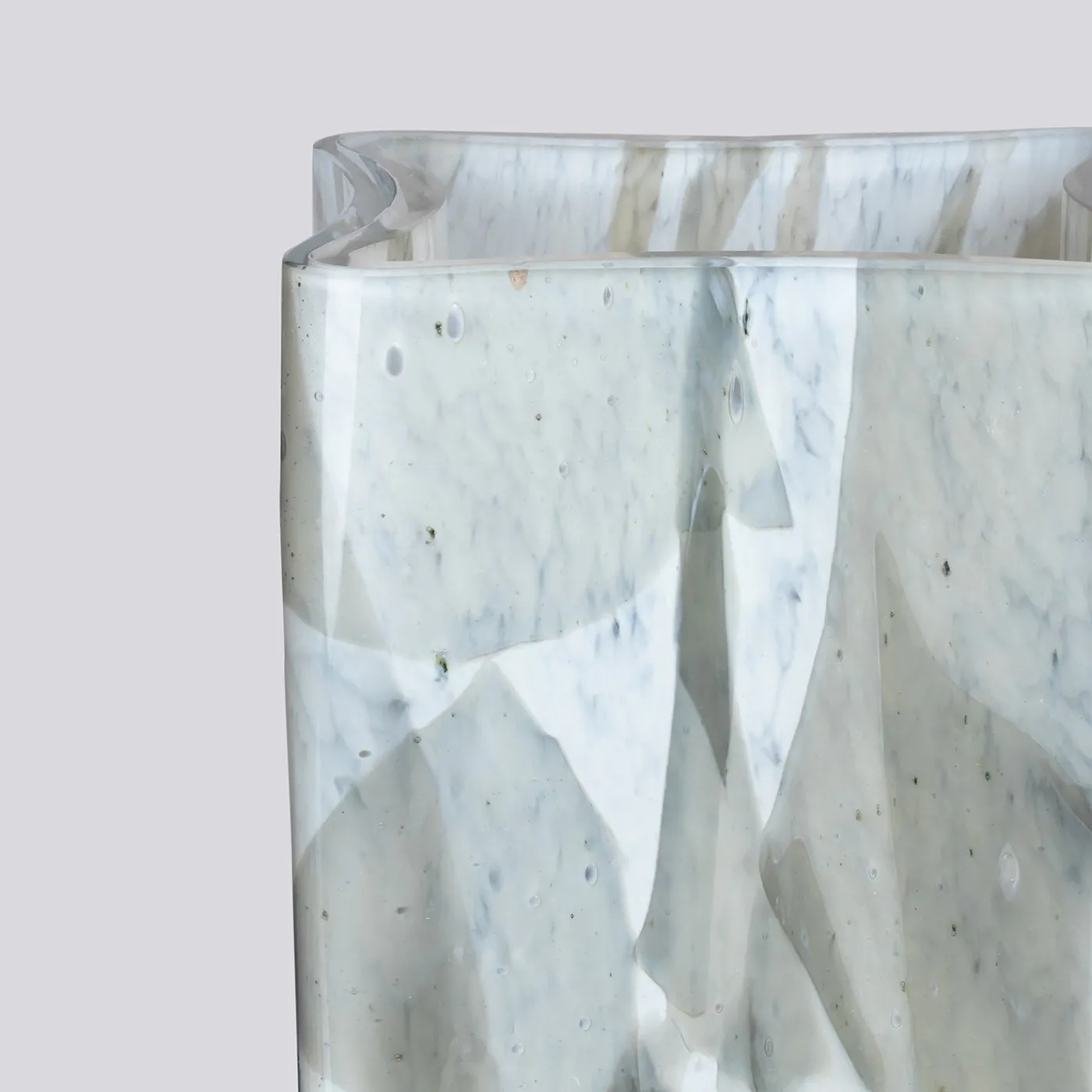 Questo vaso di squisita fattura presenta un accattivante motivo grigio creato dalla fusione di frammenti di vetro su una base avorio. La sua forma quadrata offre un’estetica moderna, rendendolo un centrotavola distintivo che eleva qualsiasi ambiente interno. Progettato come pezzo decorativo a sé stante, fonde perfettamente raffinatezza e fascino artistico, riflettendo una ricca tradizione di lavorazione del vetro. Ideale per mettere in mostra composizioni floreali o per arricchire l’arredamento di una stanza con una sottile eleganza. Ogni pezzo è unico e, a causa della lavorazione a mano, possono verificarsi lievi variazioni.