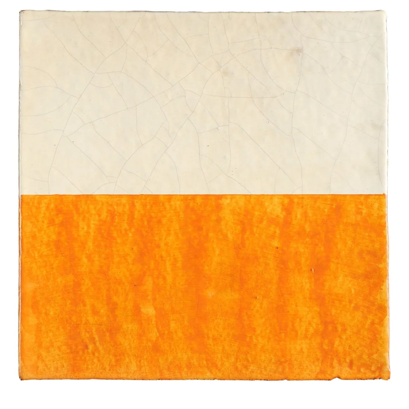 Per impreziosire un interno contemporaneo con un tocco giocoso e originale, questo raffinato set di 25 piastrelle (1 mq) appartiene alla collezione Dejavu Ficus Indica, disegnata da Luigi Patitucci. Realizzato artigianalmente in ceramica, è smaltato in una tonalità avorio impreziosita da un effetto crepe e decorato a mano con una metà arancione. Ideale da abbinare ad altre della serie Find, consultare il catalogo Artemest per altre opzioni di design. Ogni piastrella misura 20 x 20 cm.