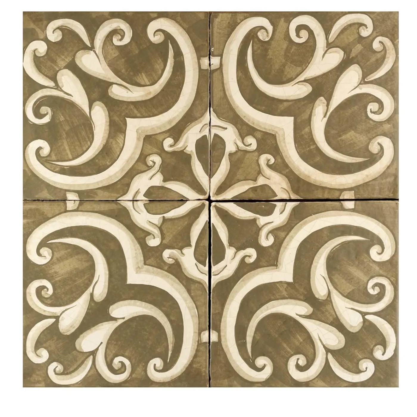 Queste maioliche, un capolavoro tutto siciliano, irradiano eleganza e raffinatezza tradizionale in qualsiasi arredamento. Le piastrelle sono realizzate a mano in terracotta mista a pietra vulcanica macinata e successivamente dipinte e smaltate a mano secondo le tecniche tradizionali. Le piastrelle presentano un intricato disegno a specchio che ricorda un caleidoscopio, con eleganti volute grandi e piccole in avorio che dominano il primo piano contrapposto al caldo sfondo marrone. Queste piastrelle sono ideali come superficie, pannello o pavimento in una cucina rustica, una sala da pranzo, un bagno o un patio.