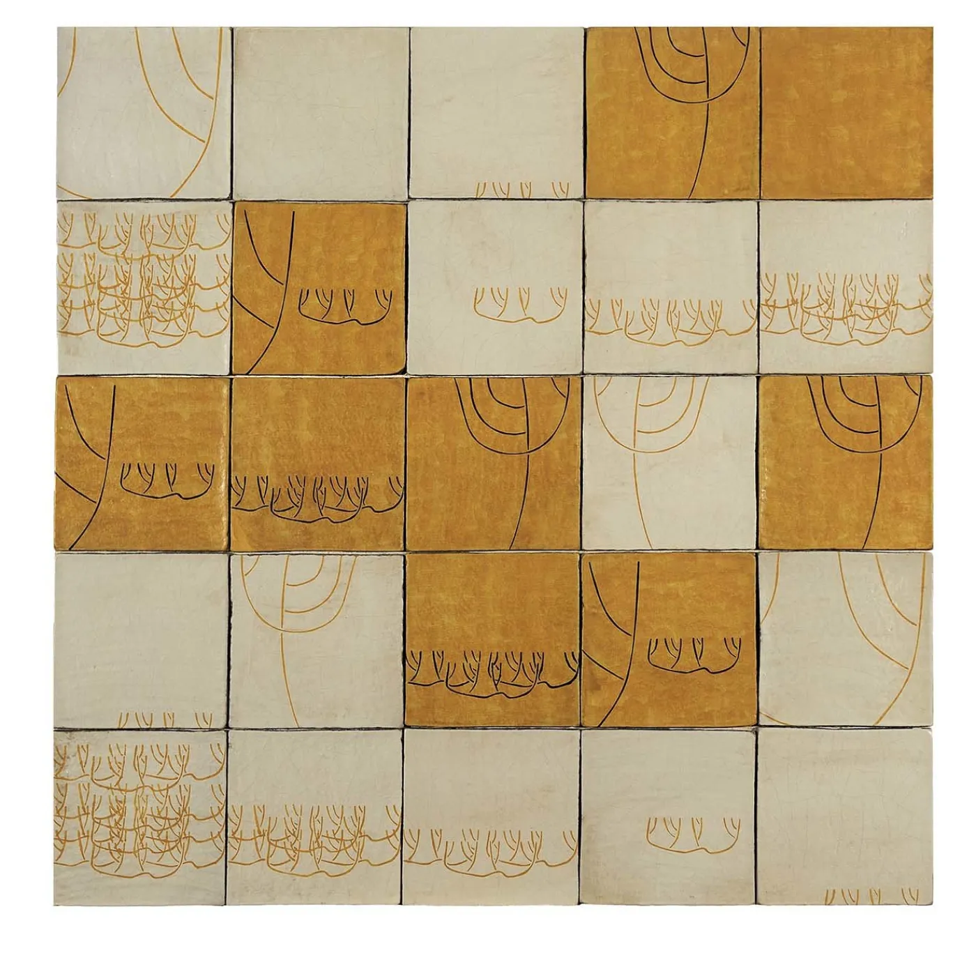 Richiamando le estrose composizioni dell’artista moderno Joan Miro, queste eleganti piastrelle aggiungeranno un tocco sorprendente a una cucina e a un bagno moderni o classici. I motivi floreali, semplici ma dinamici, sono disegnati a mano con colori neri e arancioni, esaltati rispettivamente dai colori di fondo arancione e avorio. Interamente dipinto a mano e smaltato per una finitura liscia, questo pannello di 25 piastrelle brillerà come elemento di spicco in qualsiasi interno.