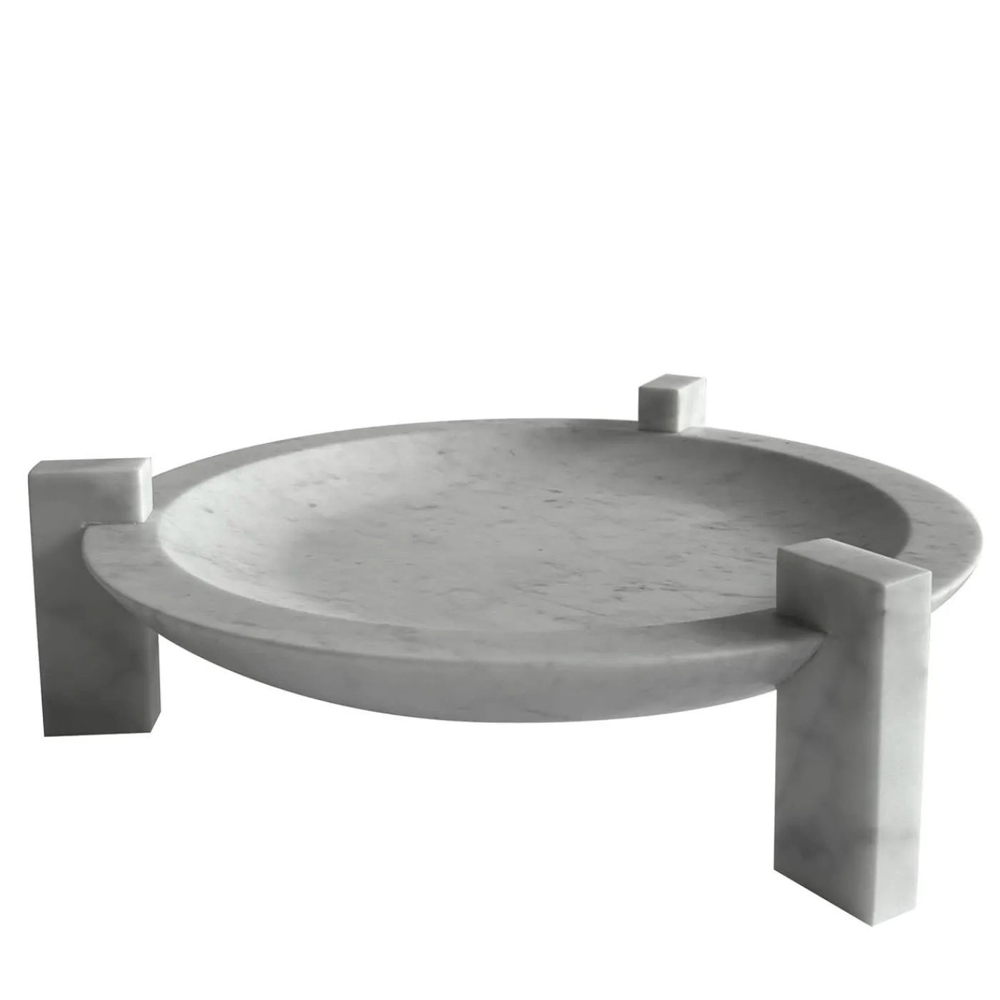 Questo centrotavola in marmo presenta un piatto circolare sospeso sostenuto da tre solidi blocchi parallelepipedi, che creano un design equilibrato e armonioso. Le venature naturali e la texture del marmo conferiscono un senso di solennità e raffinatezza. La sua struttura a basso profilo lo rende ideale per valorizzare vari ambienti con sobria eleganza. Altre finiture sono disponibili su richiesta. Contattare il Concierge per maggiori dettagli.