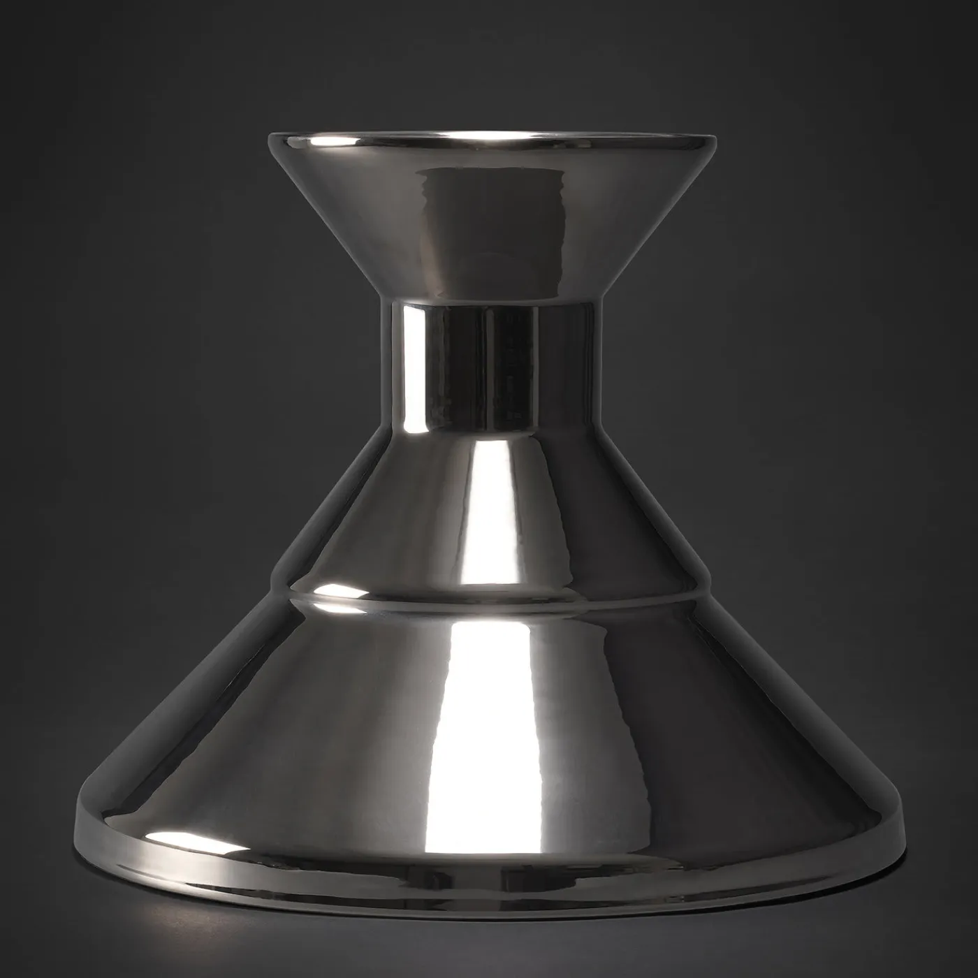 Questo elegante vaso in ceramica presenta una forma geometrica e minimalista con due coni collegati di dimensioni diverse con finitura platino.