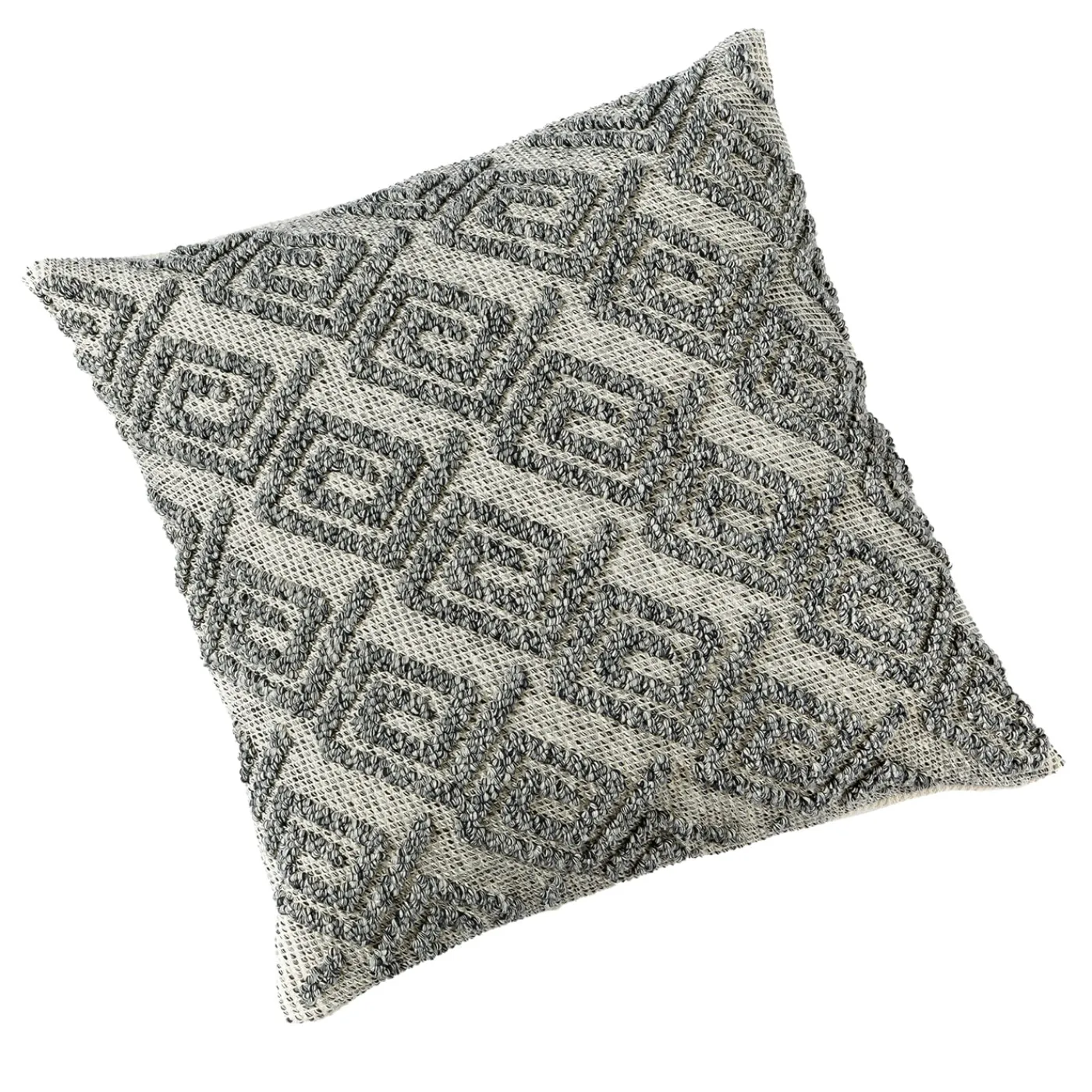 Un motivo a rilievo di spirali quadrate esalta l’estetica accattivante di questo cuscino artigianale, elegante nel suo disegno melange che mescola fili di cotone neri ed ecrù. La particolare tecnica tradizionale chiamata “pibiones” (uva in dialetto sardo) è utilizzata per creare questo pezzo, ottenendo la forma delicata dei punti che compongono la preziosa trama. Questo design felpato coniuga sapientemente gusti tradizionali e moderni.