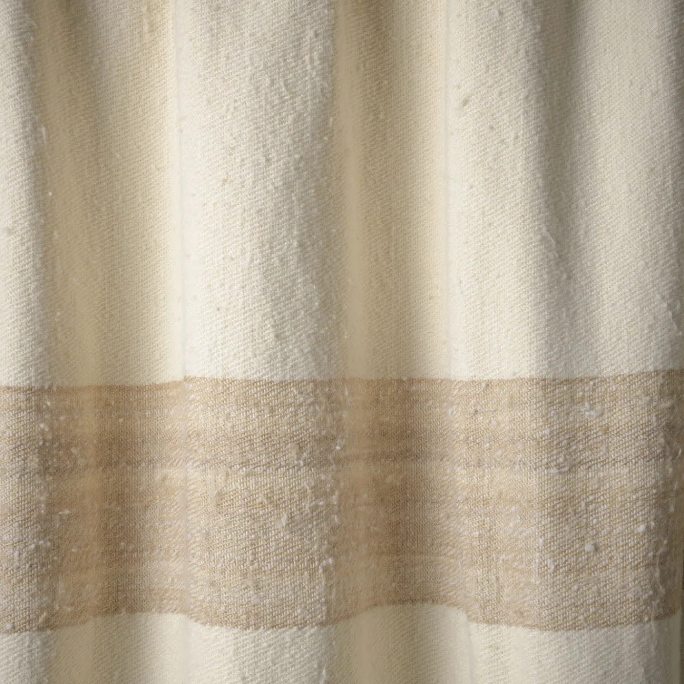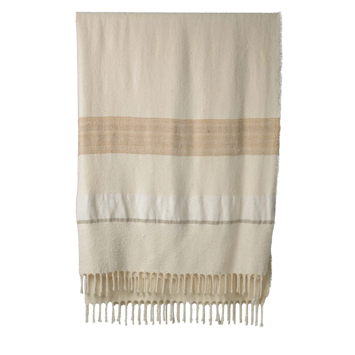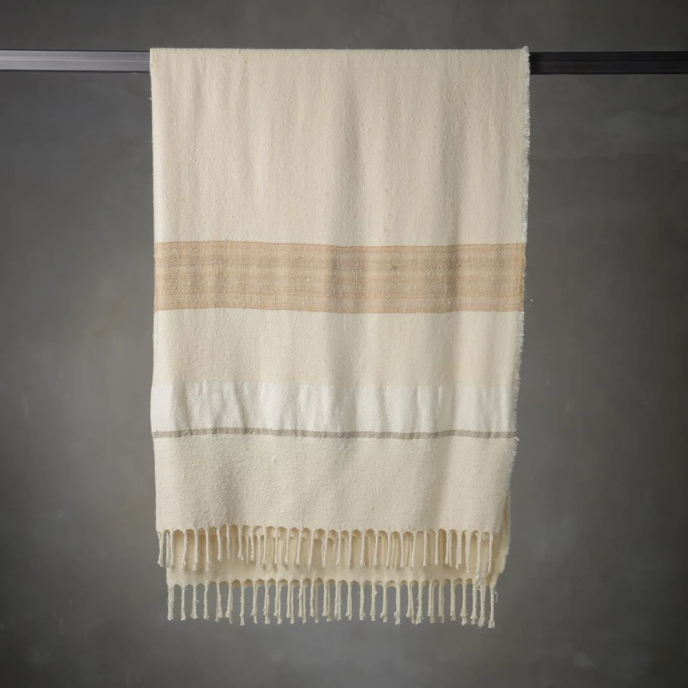 Sofisticate tonalità neutre e una texture distintiva caratterizzano questa elegante coperta, un prezioso disegno artigianale che evoca le coste. La trama, vivacizzata da audaci frange, mescola pregiati filati di lino e seta per creare un motivo a righe che, rafforzato dalla delicata palette di colori neutri, conferisce alla coperta la sua versatile eleganza.