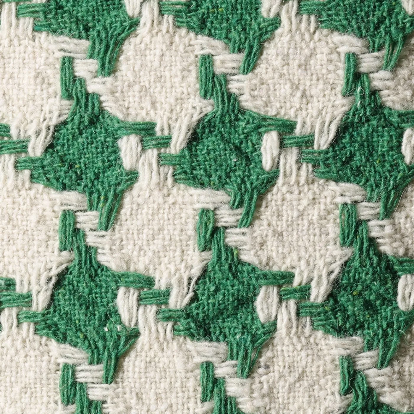 Il disegno esagerato del pied de poule di Peripezia è realizzato in una combinazione di lana, poliestere e poliammide, fibre che reagiscono in modo diverso quando vengono bollite, conferendo al tessuto un carattere insolito. L’irresistibile trama e il motivo creano un elegante labirinto visivo all’interno del quale lo sguardo si perde.