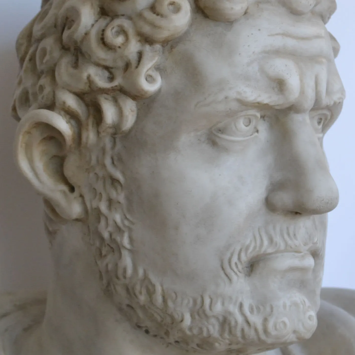 Questo imponente busto dell’imperatore Caracalla fa rivivere la storia con notevole realismo. Scolpito in luminoso marmo di Lasa, la sua espressione sorprendente e la veste finemente dettagliata emanano forza e presenza. La morbida patina di invecchiamento aggiunge profondità e carattere, conferendo un fascino autentico e vissuto. Un capolavoro della scultura classica, che incarna il potere di uno dei più formidabili leader di Roma.