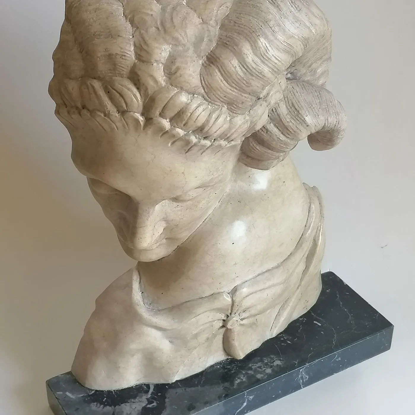 Scultura di un fauno addormentato scolpito in marmo giallo cleopatra egiziano, montato su una base in marmo nero marquina. Questo pezzo presenta una finitura antichizzata con patine speciali, evocando l’aspetto delle opere d’arte originali dei musei. Realizzata nel laboratorio certificato Todini, riconosciuto per il suo elevato valore culturale ed estetico, questa scultura decorativa offre dettagli raffinati ed eleganza classica. Pezzo unico.