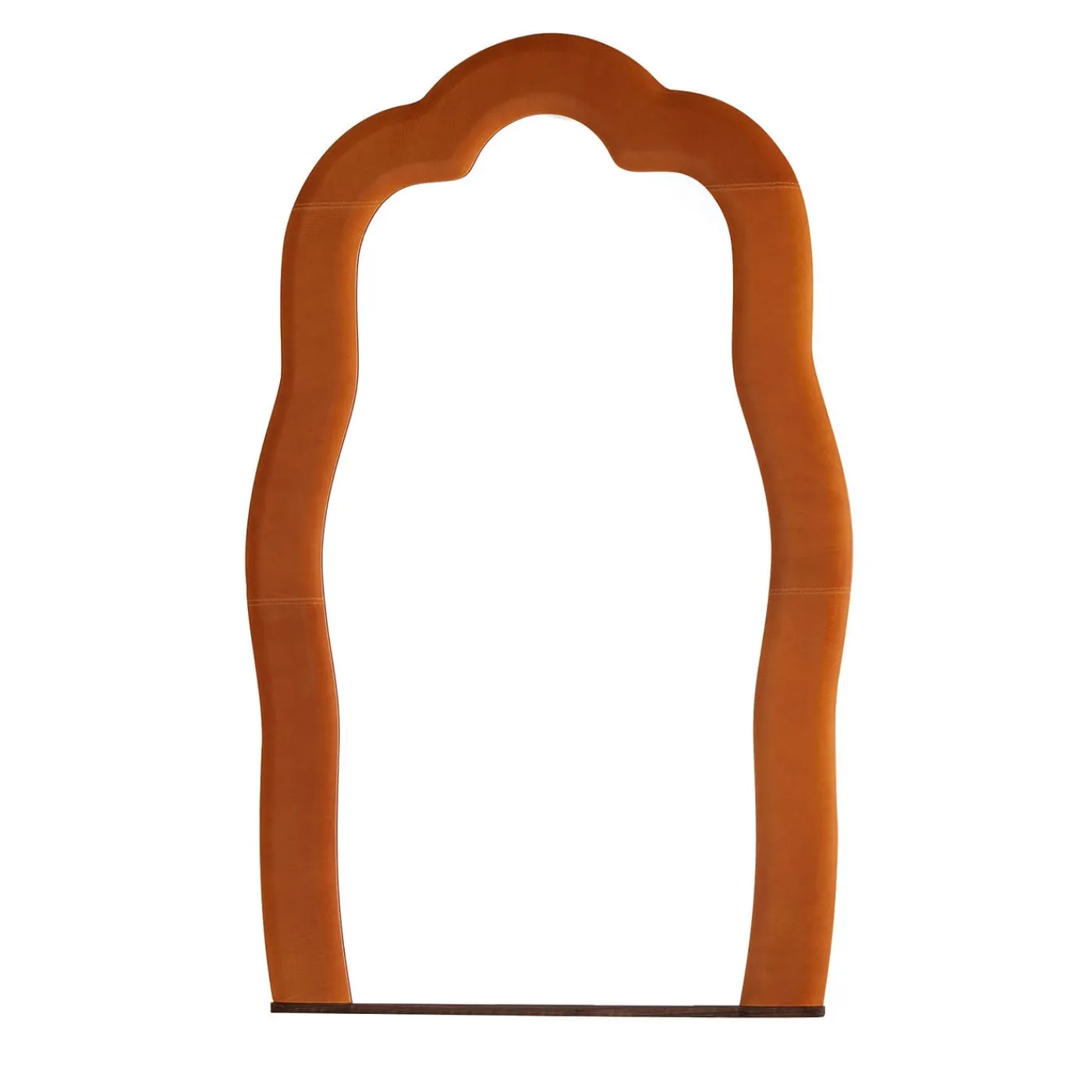 Uno specchio che può essere un portale verso un mondo immaginario, si propone per un arredamento estremamente scenografico. La sua forma è organica e riproduce le onde del mare. Il suo aspetto è caldo e avvolgente grazie alla cornice spessa, rivestita in pelle. Il rivestimento della cornice e le dimensioni dello specchio sono personalizzabili; per ulteriori informazioni, contattare il Concierge.