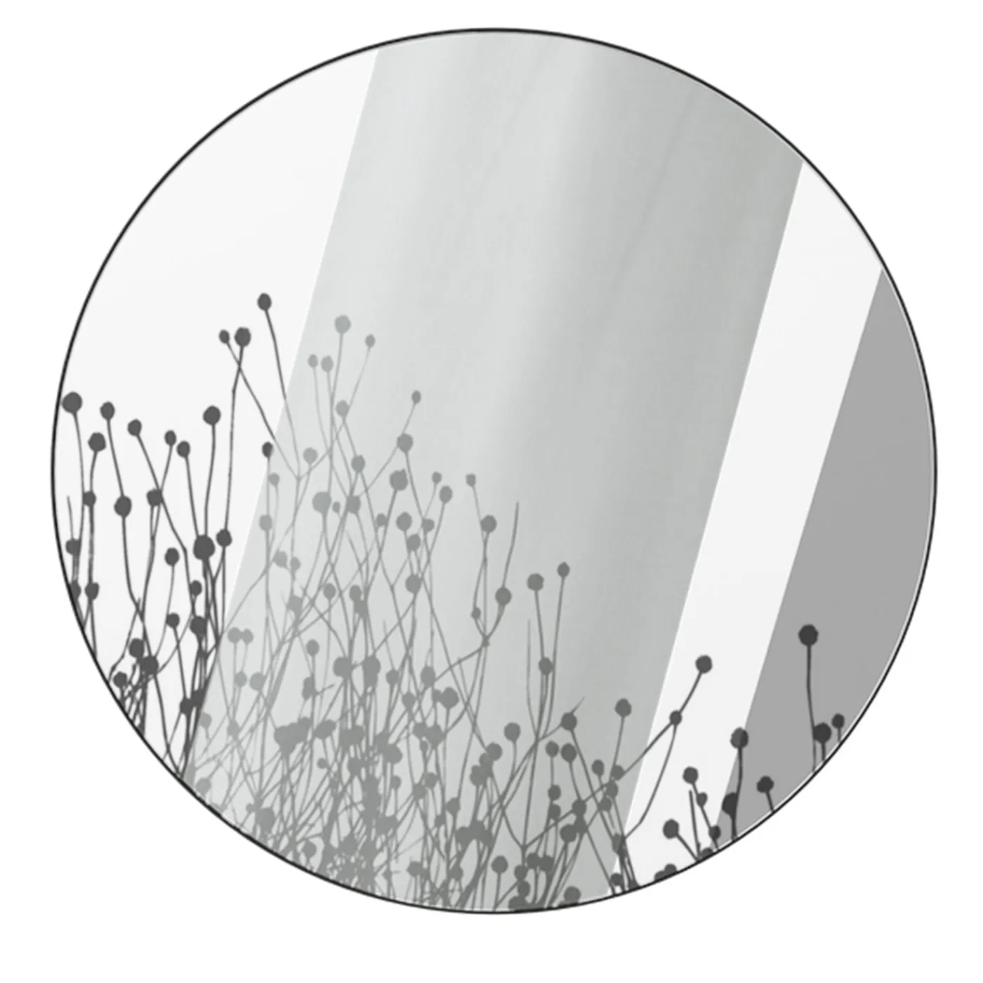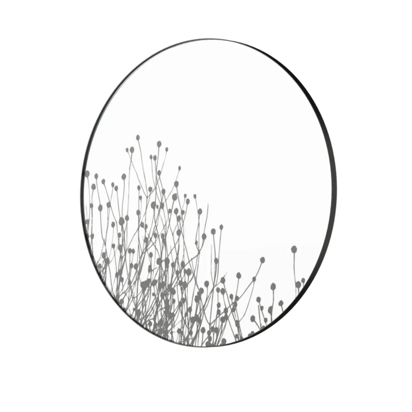 Lo specchio Wildfield presenta un ampio diametro di 130 cm con una elegante cornice metallica finita in argento. La superficie dello specchio incorpora un delicato motivo grafico di rami e gemme sottili, aggiungendo un sottile dettaglio artistico. Perfetto per valorizzare gli spazi a parete con un mix di funzionalità e design moderno, questo pezzo offre un’estetica raffinata adatta a vari interni contemporanei.