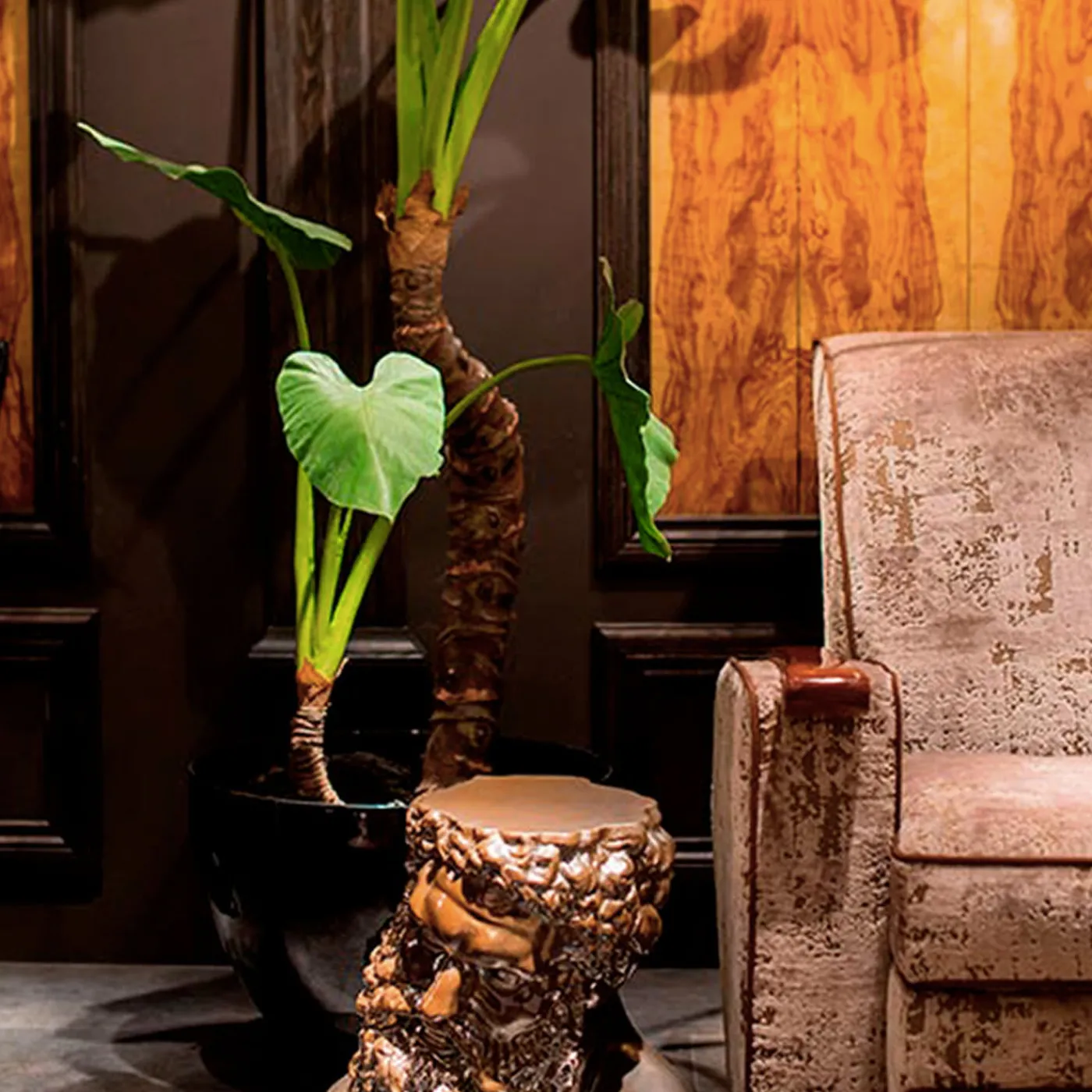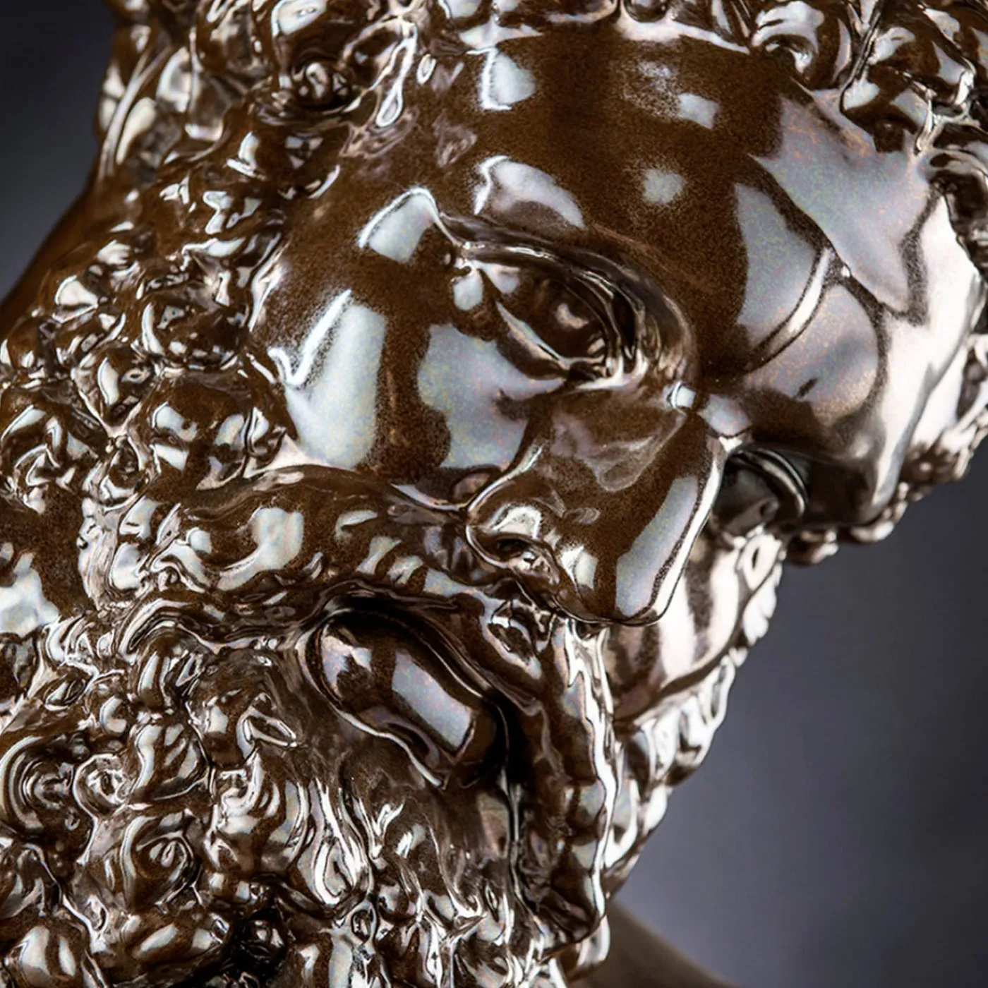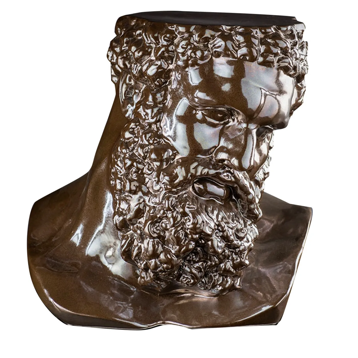 Interamente realizzata a mano in ceramica con un elegante smalto marrone lucido, questa scultura decorativa raffigura l’eroe mitologico Ercole, qui reinterpretato in chiave moderna. Unico nel suo genere e di dimensioni generose, questo pezzo si farà notare se usato come tavolino d’accento, come base per oggetti decorativi o anche come seduta aggiuntiva, elevando l’aspetto e l’atmosfera di qualsiasi interno.