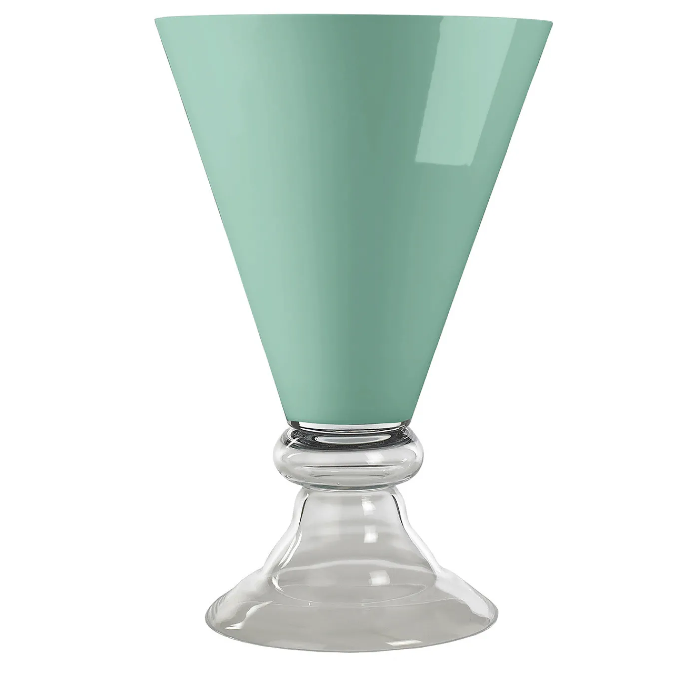 Questo elegante vaso sfoggia un design versatile e senza tempo che si farà notare sia in un arredamento moderno che classico, soprattutto se abbinato ad altri della stessa serie. Caratterizzato da linee pulite ed essenziali, combina una base svasata in vetro trasparente con una silhouette svasata verde neo-menta.
