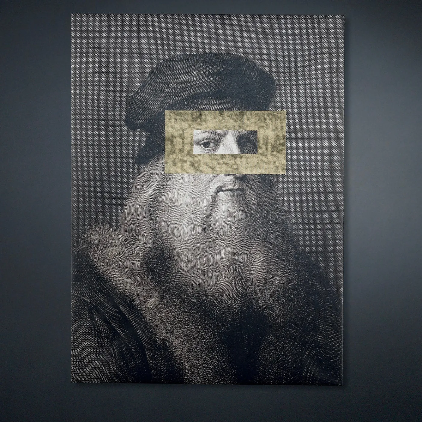 Con un ritratto di Leonardo da Vinci, decorato con una cornice rettangolare in foglia d’oro che mette in risalto gli occhi del maestro, questo splendido pannello decorativo sarà un’aggiunta esclusiva a un ambiente contemporaneo. Montato su un telaio in legno, è realizzato su tela stampata. Per ulteriori dettagli, contattare il Concierge.