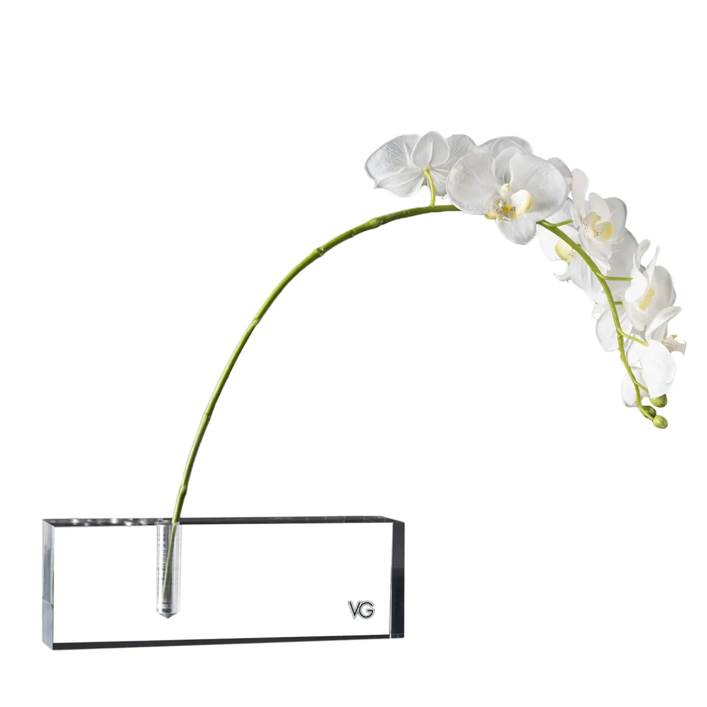 Espressione sublime di un design pulito e minimalista, questo piccolo vaso per boccioli è definito da una forma rettangolare arricchita da un piccolo ma profondo foro per accogliere il fiore. Straordinaria vetrina di raffinata eleganza, è interamente realizzato in plexiglass trasparente. Ideale per matrimoni ed eventi speciali e per l’arredamento della casa.
