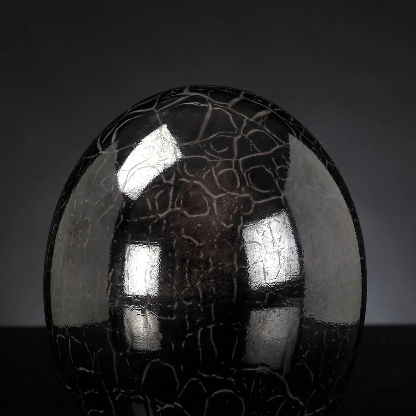 Un affascinante pezzo da collezione, questo uovo decorativo in vetro sarà uno splendido regalo di inaugurazione per una casa moderna. Realizzato con maestria da mani esperte in vetro pregiato, la sua silhouette a forma di uovo sfoggia un carattere marrone lucido arricchito da delicate venature che riproducono la naturale fessurazione del guscio dell’uovo.