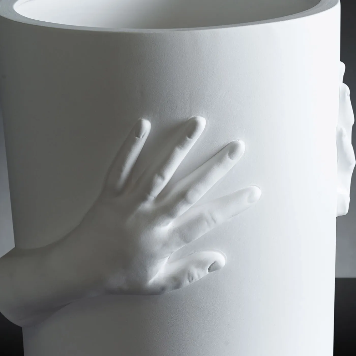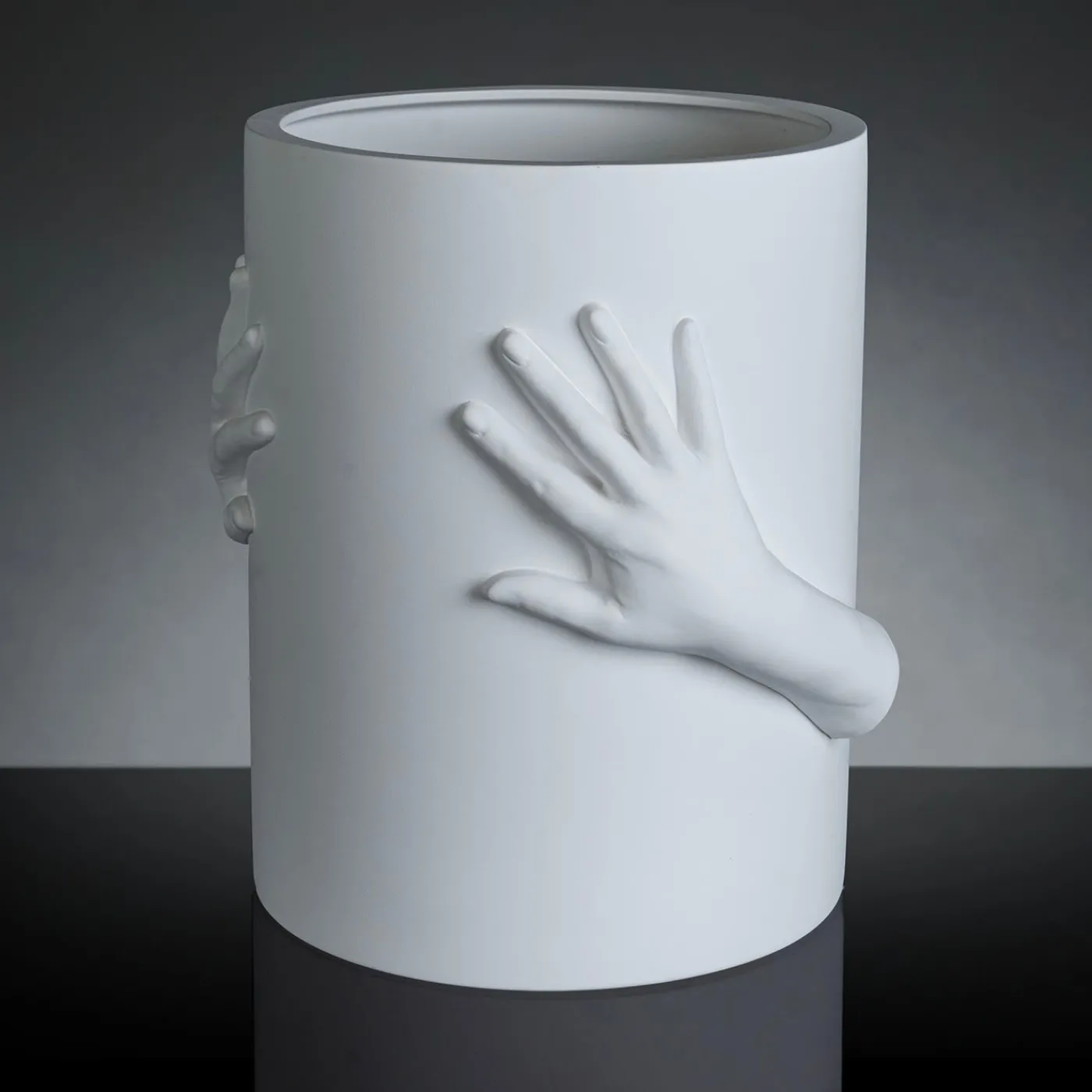 Le mani dell’iconica scultura David di Michelangelo sono qui riprodotte abbracciando un semplice cilindro di ceramica proposto in una luminosa finitura bianca opaca. Questo vaso decorativo, che emana un fascino eclettico, è stato accuratamente modellato e dettagliato da maestri artigiani per celebrare i capolavori del Rinascimento italiano reinterpretandone i dettagli in un design fresco e contemporaneo.