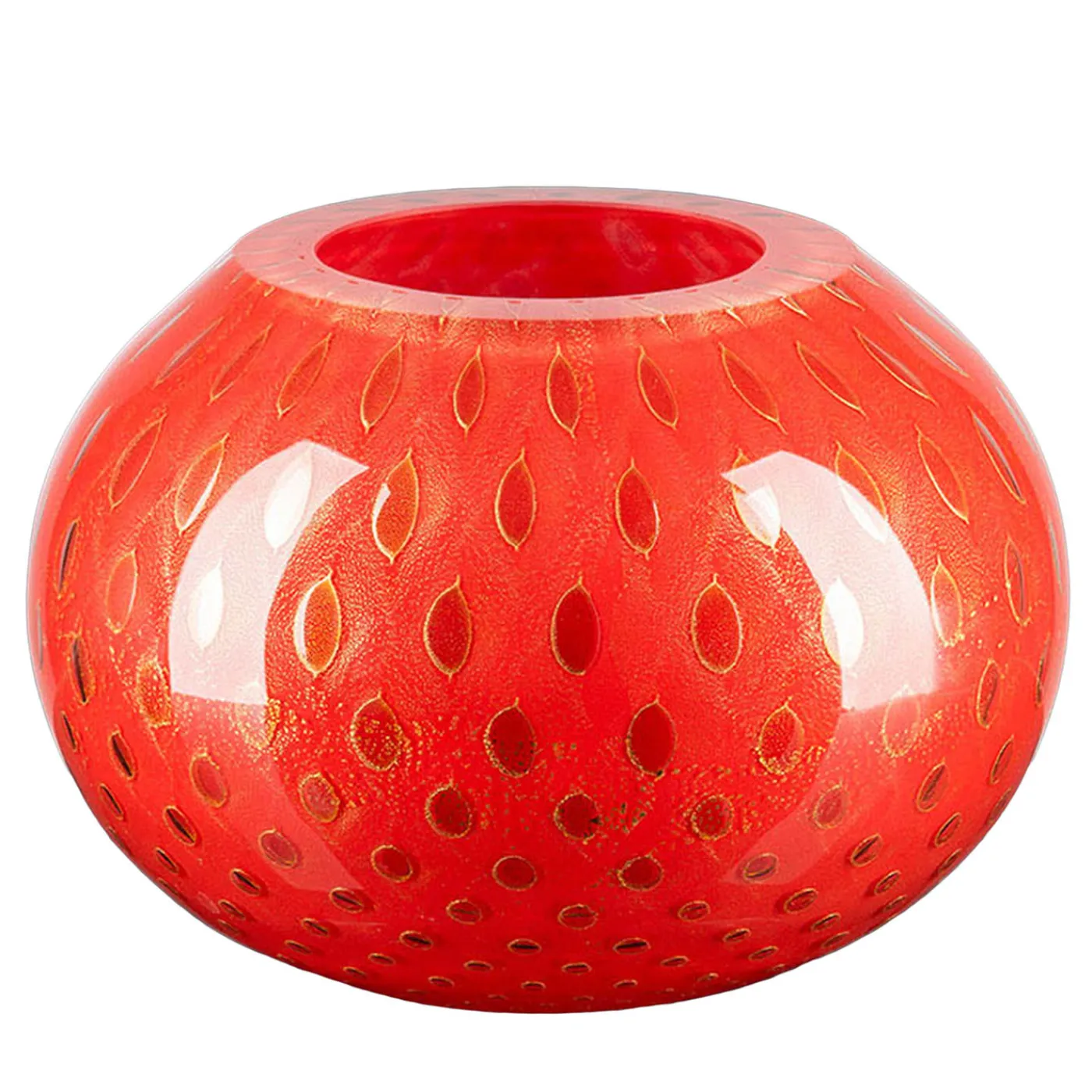 L’impareggiabile maestria dei soffiatori di vetro muranesi ha reso possibile questo singolare vaso sferico. Glamour nella sua tonalità rosso vivo, arricchita da un motivo di puntini dorati in grado di creare splendidi bagliori, aggiungerà contemporaneamente un tocco di colore e tradizione a qualsiasi superficie, dalle moderne credenze alle sofisticate tavole nuziali. Altri colori sono disponibili nel catalogo Artemest.