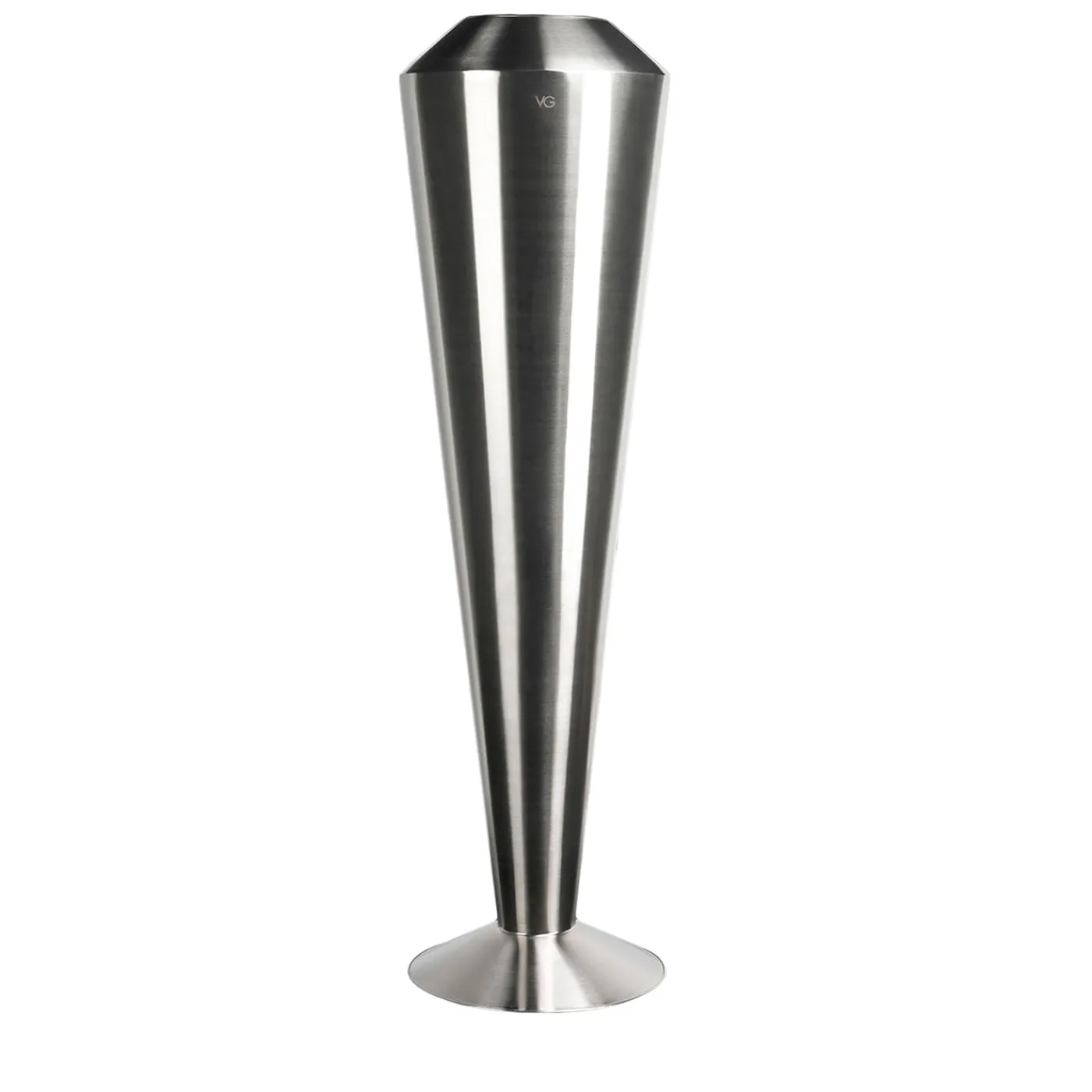 Questo vaso alto a forma di obelisco, che completa lo stile di uno spazio nuziale, di un evento speciale e dell’arredamento della casa, farà la sua figura in un ambiente raffinato e contemporaneo. Realizzato a mano in acciaio satinato, appartiene a una serie di vasi eleganti e luminosi. Per ulteriori dettagli, contattare il Concierge.