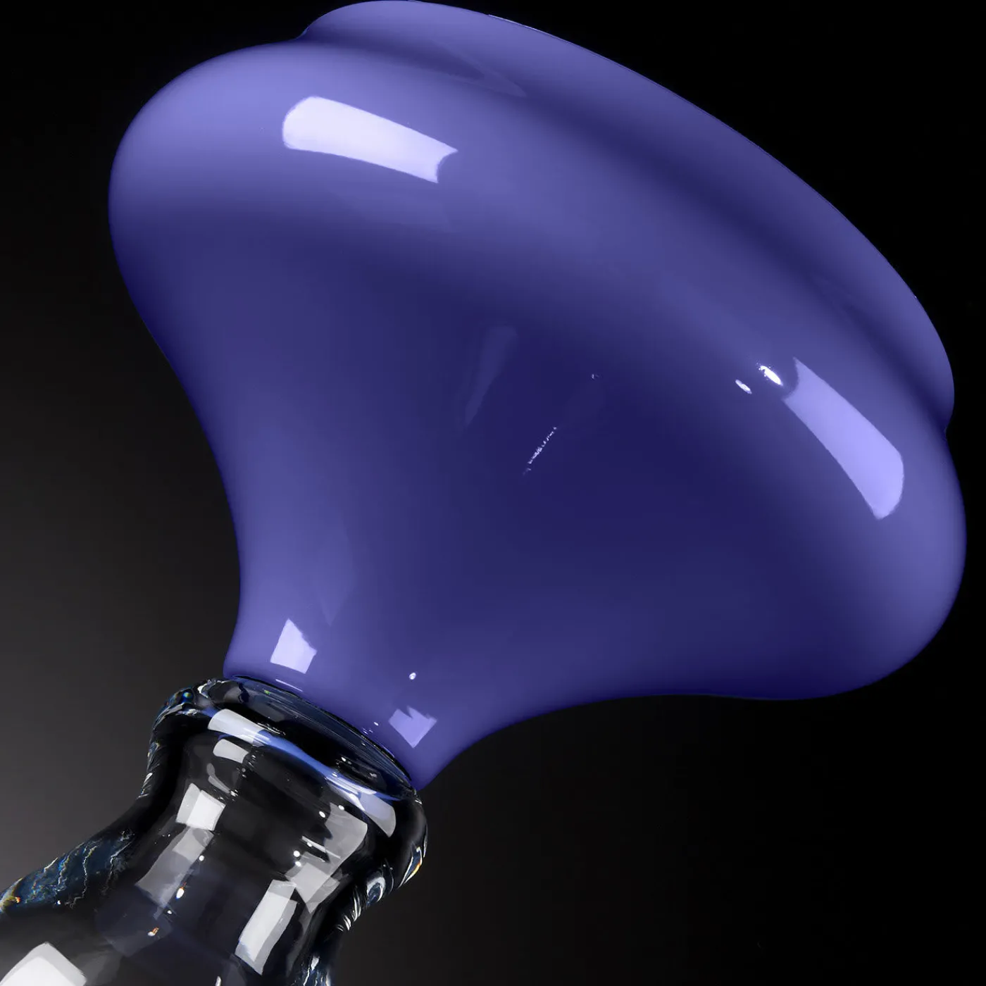 Questo vaso è un pezzo moderno di arredamento funzionale che si farà notare da solo o abbinato a un altro pezzo Zeus in un arredamento minimalista o contemporaneo. Realizzato da mani esperte con tecniche tradizionali di lavorazione del vetro, contrappone una tonalità di vetro chiaro sul raffinato stelo a una vivace tonalità lilla scuro che contraddistingue la coppa.