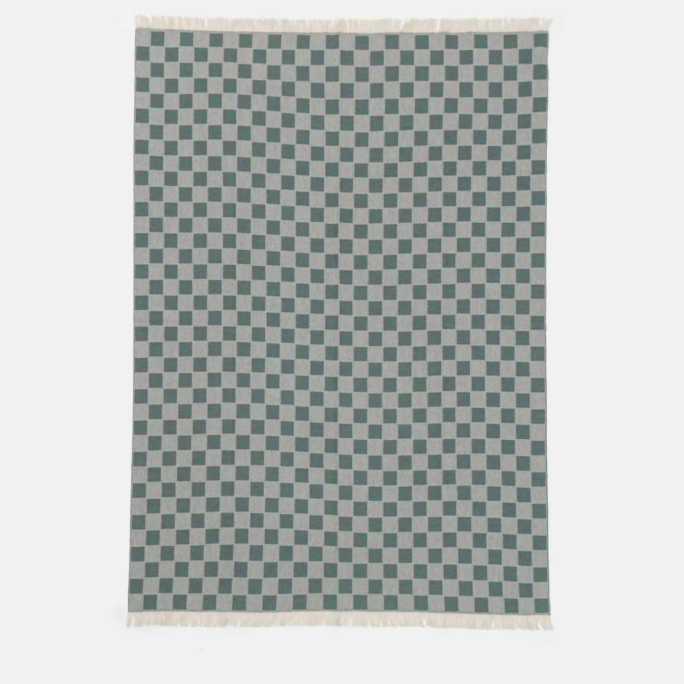 Un sapiente processo di tessitura è alla base di questa accattivante coperta con motivo a scacchiera, che vanta una miscela di 55% cashmere e 45% lana. Ravvivata da morbide e sottilissime frange beige lungo i bordi, richiede attenzione per l’ampio motivo a quadri proposto in tonalità di verde a contrasto, per una dichiarazione cromatica fresca e rilassante. Nel catalogo Artemest è disponibile anche una variante marrone.