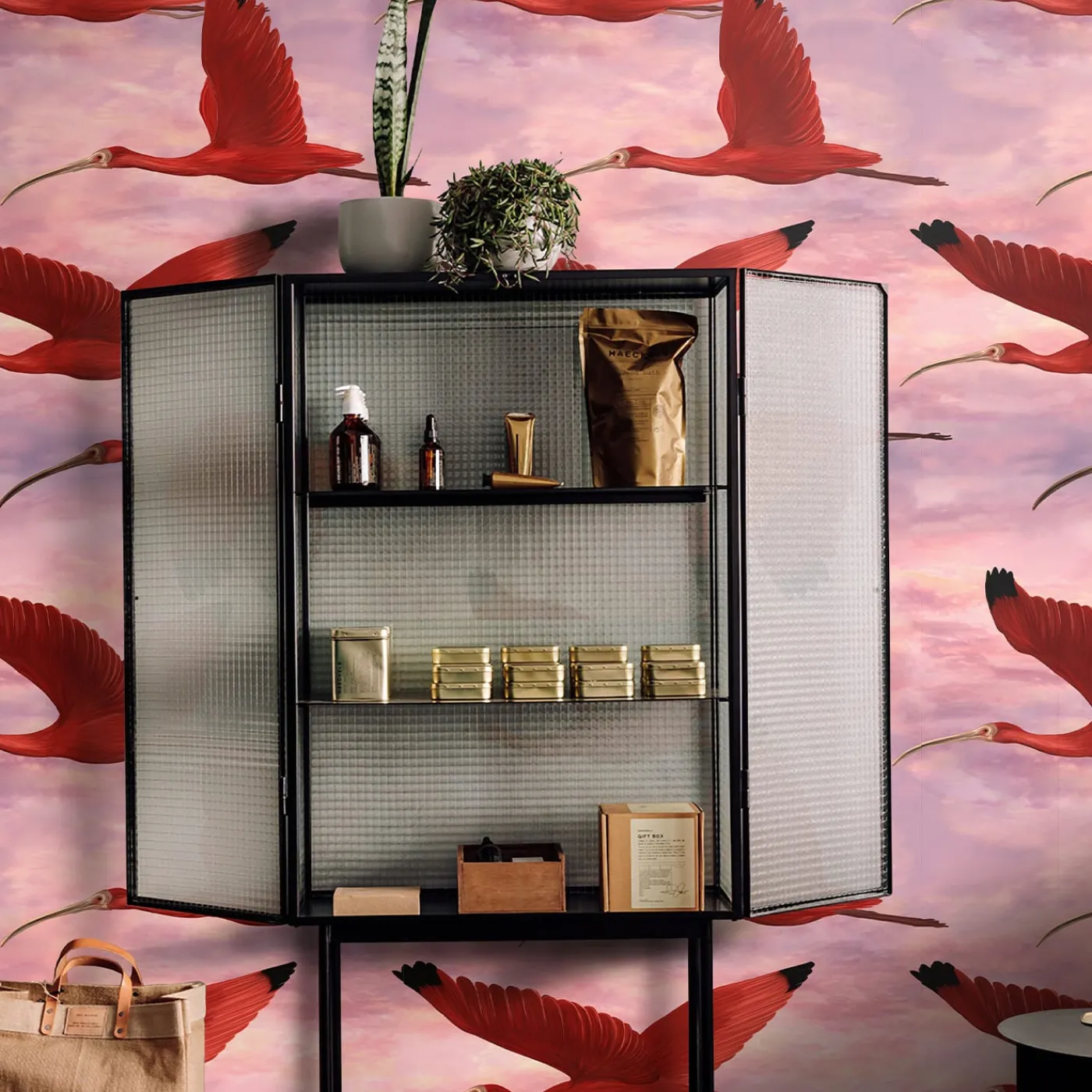 La carta da parati è realizzata in carta ecologica al 100%, stampata con inchiostri vegani a base d’acqua e priva di sostanze chimiche e solventi. Ogni pacco contiene otto fogli. Ispirata alla tradizione inglese del XVIII secolo e stampata in Italia, è perfetta per pareti, scaffali e mobili. Il design presenta ibises scarlatti che volano con grazia in un cielo al tramonto rosa, creando un’esperienza naturale da sogno. Il prezzo si riferisce a un pacco contenente 8 fogli di carta da parati premium. Ogni foglio misura 27,5 x 39,4 pollici (70 x 100 cm), per una copertura totale di 59,2 piedi quadrati (5 mq).