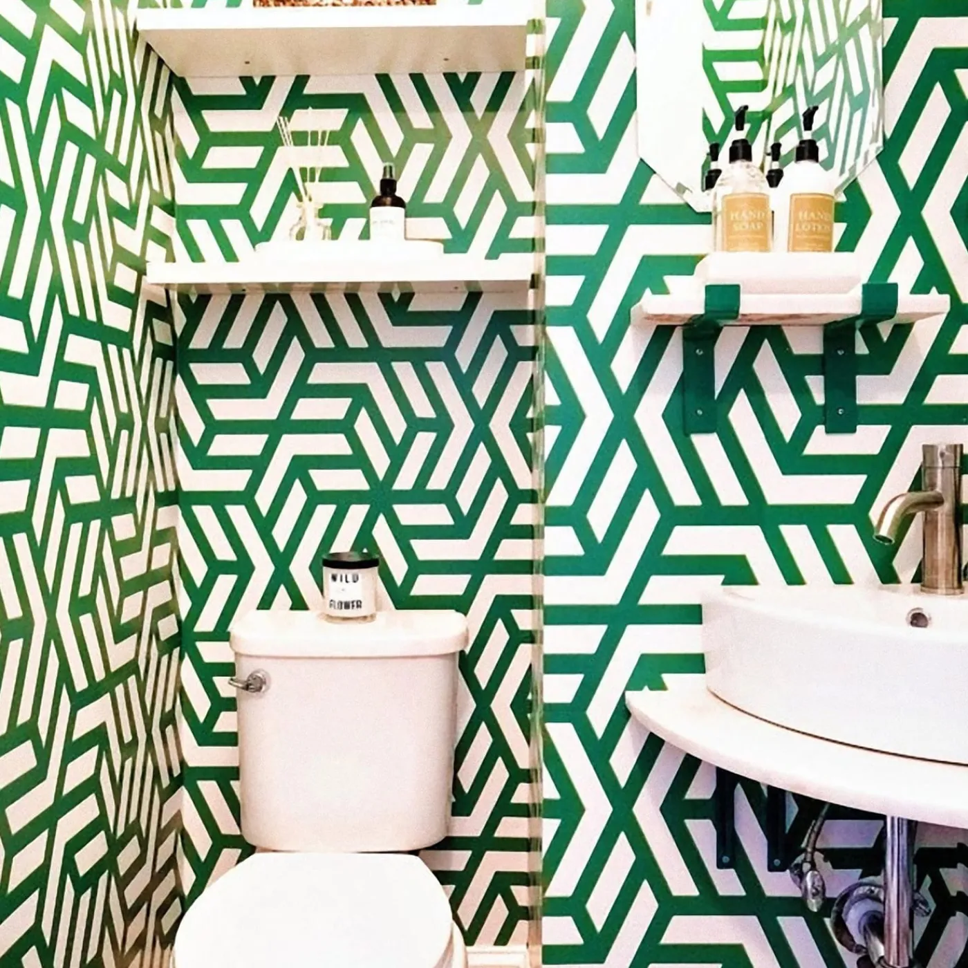 La carta da parati è realizzata in carta 100% ecologica, stampata con inchiostri vegani a base d’acqua e priva di sostanze chimiche e solvenze. Ogni pacchetto contiene otto fogli. Ispirato alla tradizione inglese del XVIII secolo e stampato in Italia, è perfetto per pareti, mensole e mobili. La stampa raffigura un motivo geometrico verde e bianco in stile Mid-Century. I colori semplici e la stampa di base possono essere facilmente abbinati. Il prezzo si riferisce a un pacchetto contenente 8 fogli di carta da parati premium. Ogni foglio misura 27,5 x 39,4 pollici (70 x 100 cm), per una copertura totale di 59,2 piedi quadrati (5 mq).