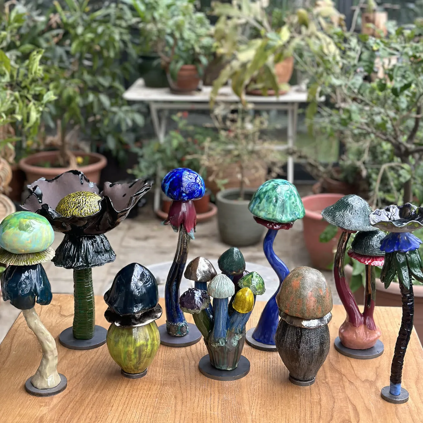 Scultura in ceramica ispirata al mondo naturale dei funghi, realizzata con argille e tecniche diverse, ogni singolo pezzo è lavorato e dipinto a mano, rendendolo unico. Ha una base in ferro arrotondata per garantire un perfetto equilibrio. I funghi sono icone pop: c’è chi li colleziona, chi ama mangiarli, chi si cura grazie al loro potere e tutti hanno in qualche modo un ricordo d’infanzia legato ai “funghi”.