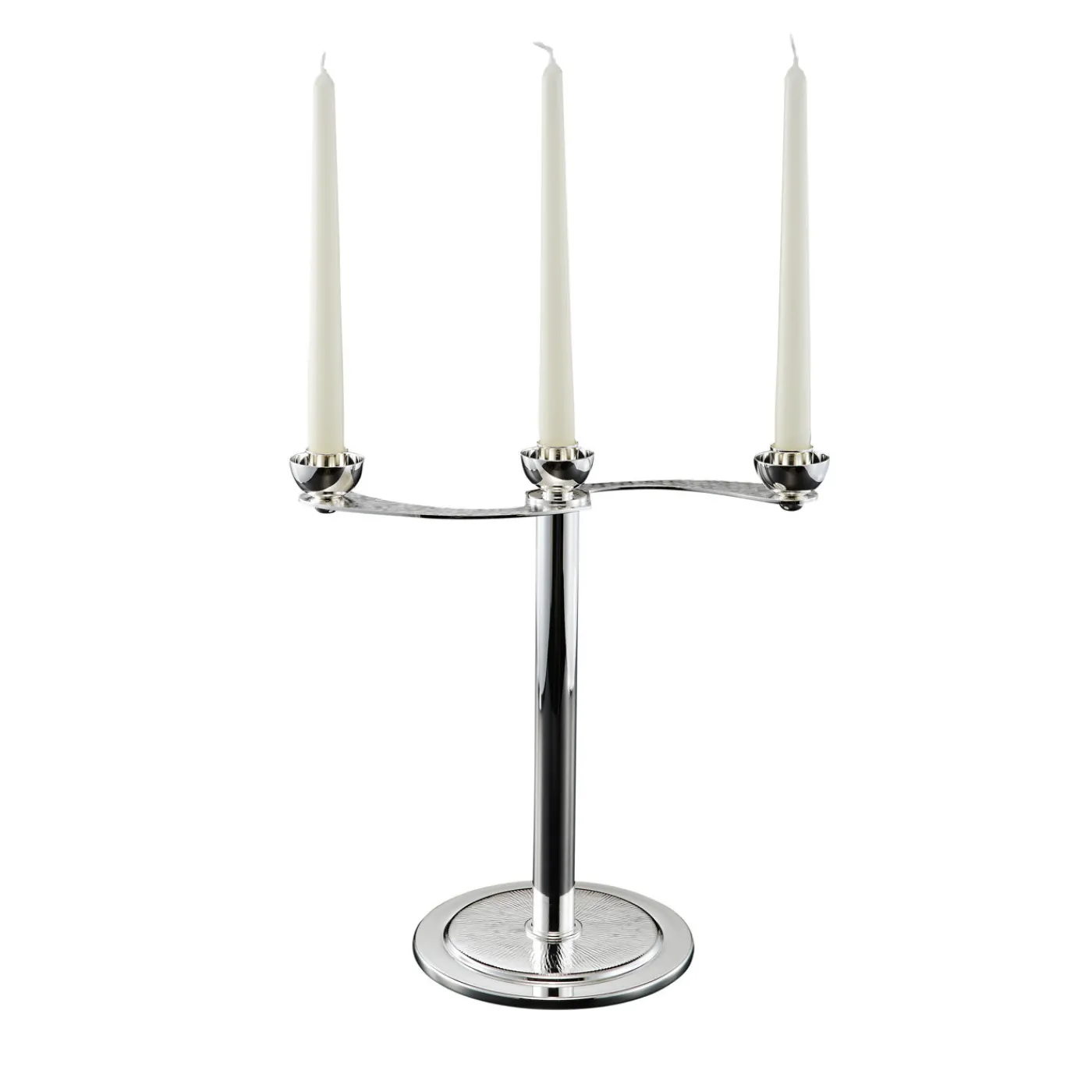 Il bellissimo candelabro contiene tre candele ed è elegantemente costruito in lega argentata. Il candelabro può essere separato in due parti: la parte superiore contiene le candele e la base diventa un vaso. Anche i bracci del candelabro sono mobili.