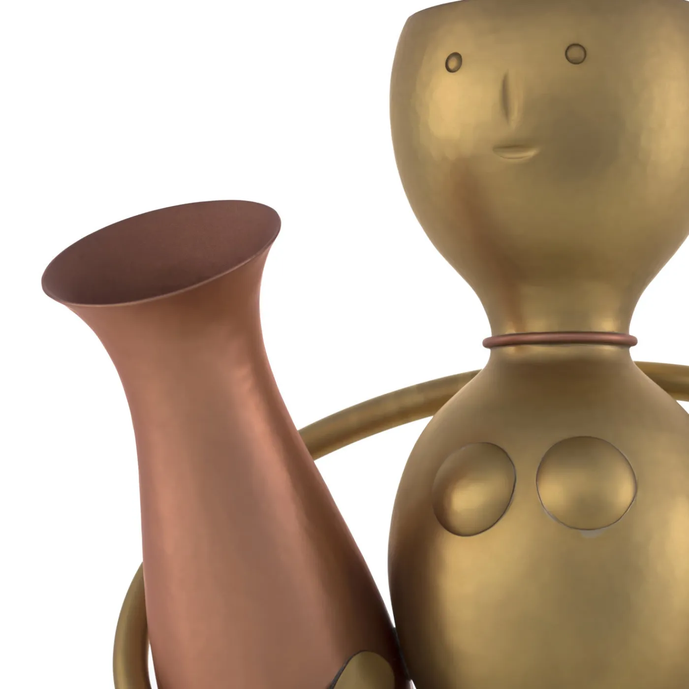 Questo sorprendente vaso fa parte di una serie limitata di soli dodici pezzi che rende omaggio a Pablo Picasso. Le sue forme femminili sono realizzate in ottone e le loro forme sinuose evocano la semplicità poetica delle opere del grande pittore. Le braccia e il grazioso vaso che la donna porta con sé sono realizzati in rame e creano un’aggiunta giocosa a questo pezzo che può essere utilizzato anche come vaso, grazie alla pratica apertura sulla testa semisferica.